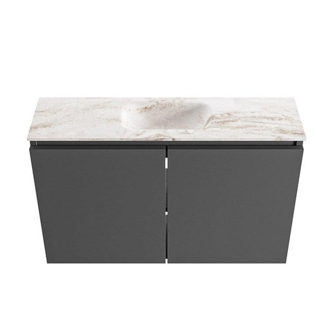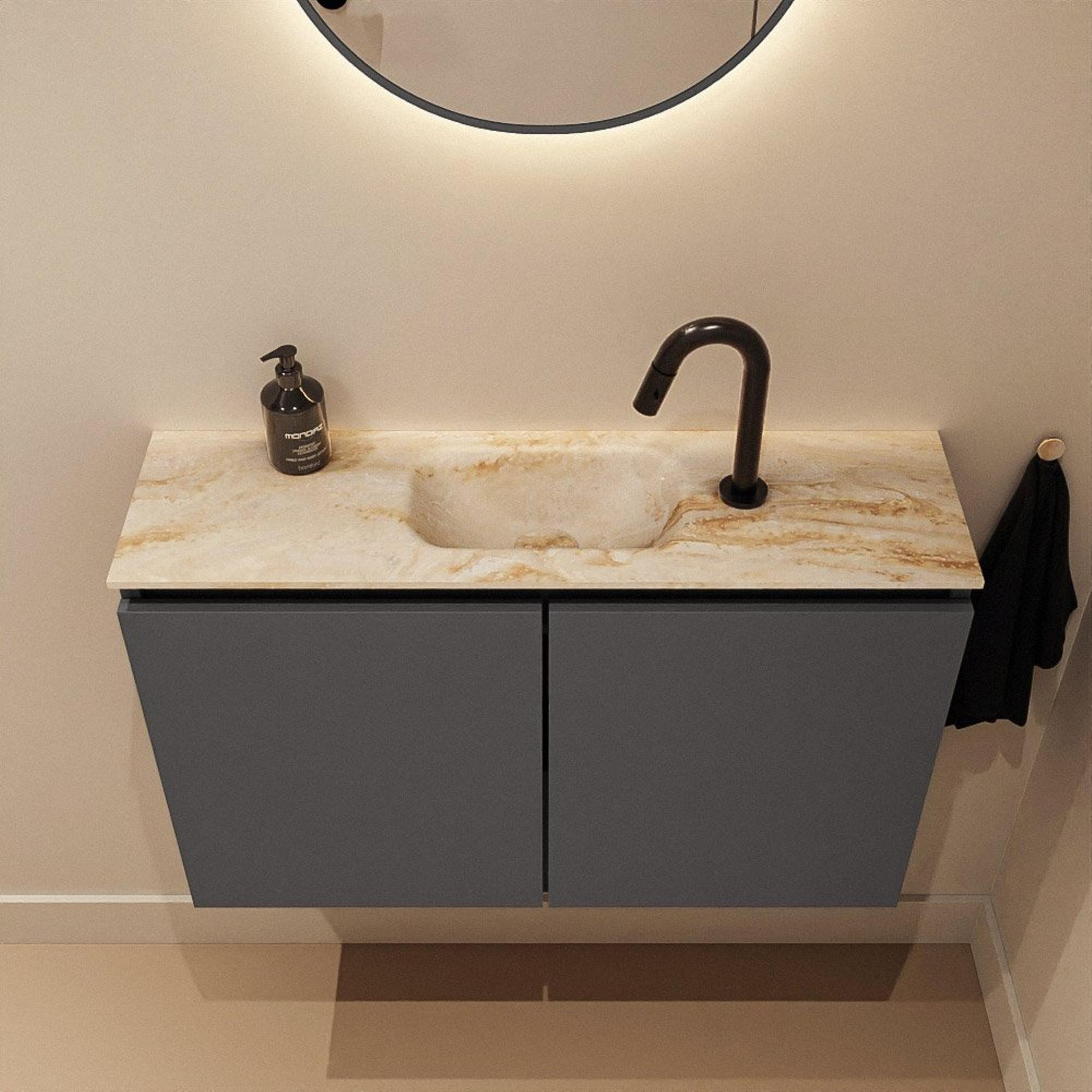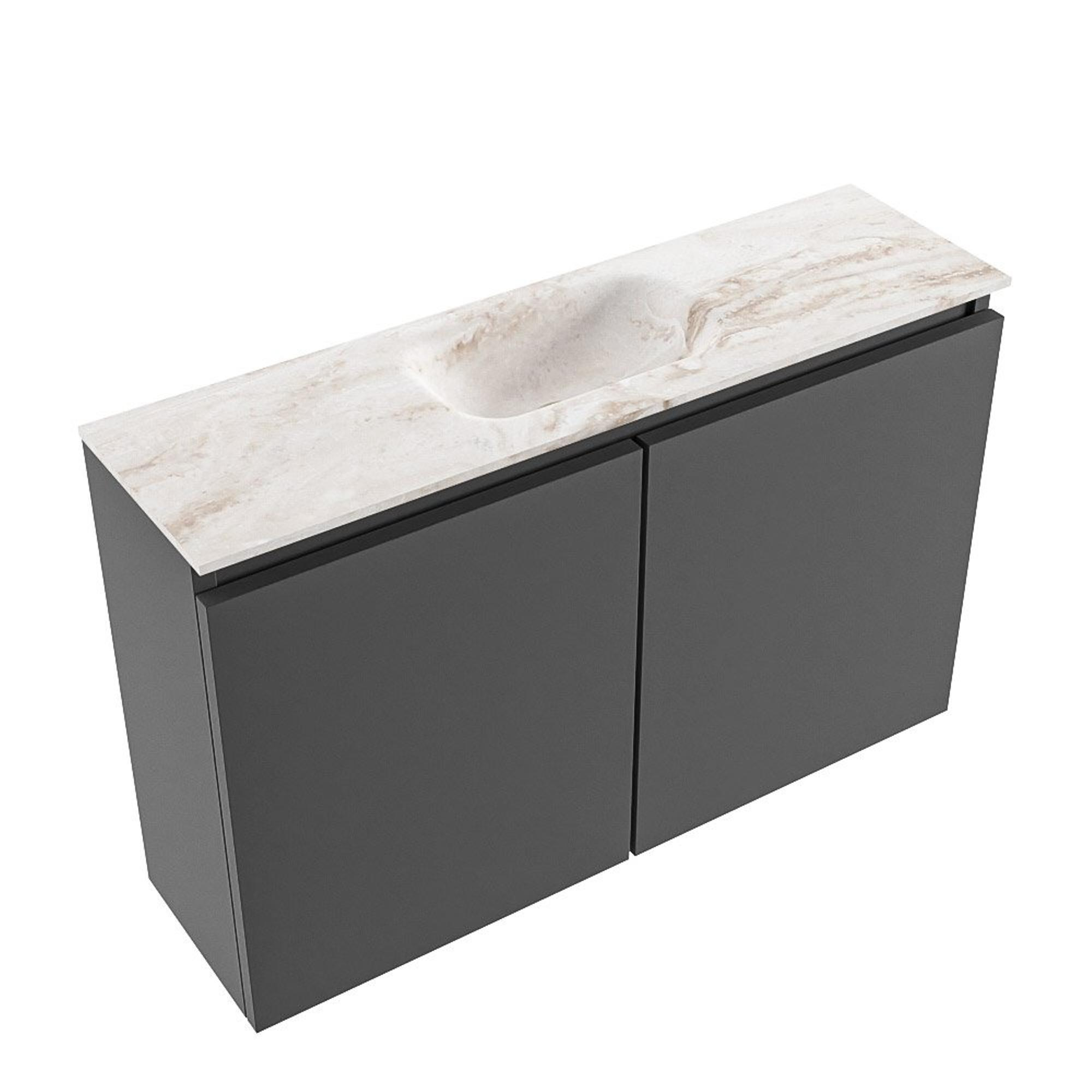 MONDIAZ TURE-DLUX 80cm toiletmeubel Dark Grey. EDEN wastafel Frappe positie midden. Met 1 kraangat.