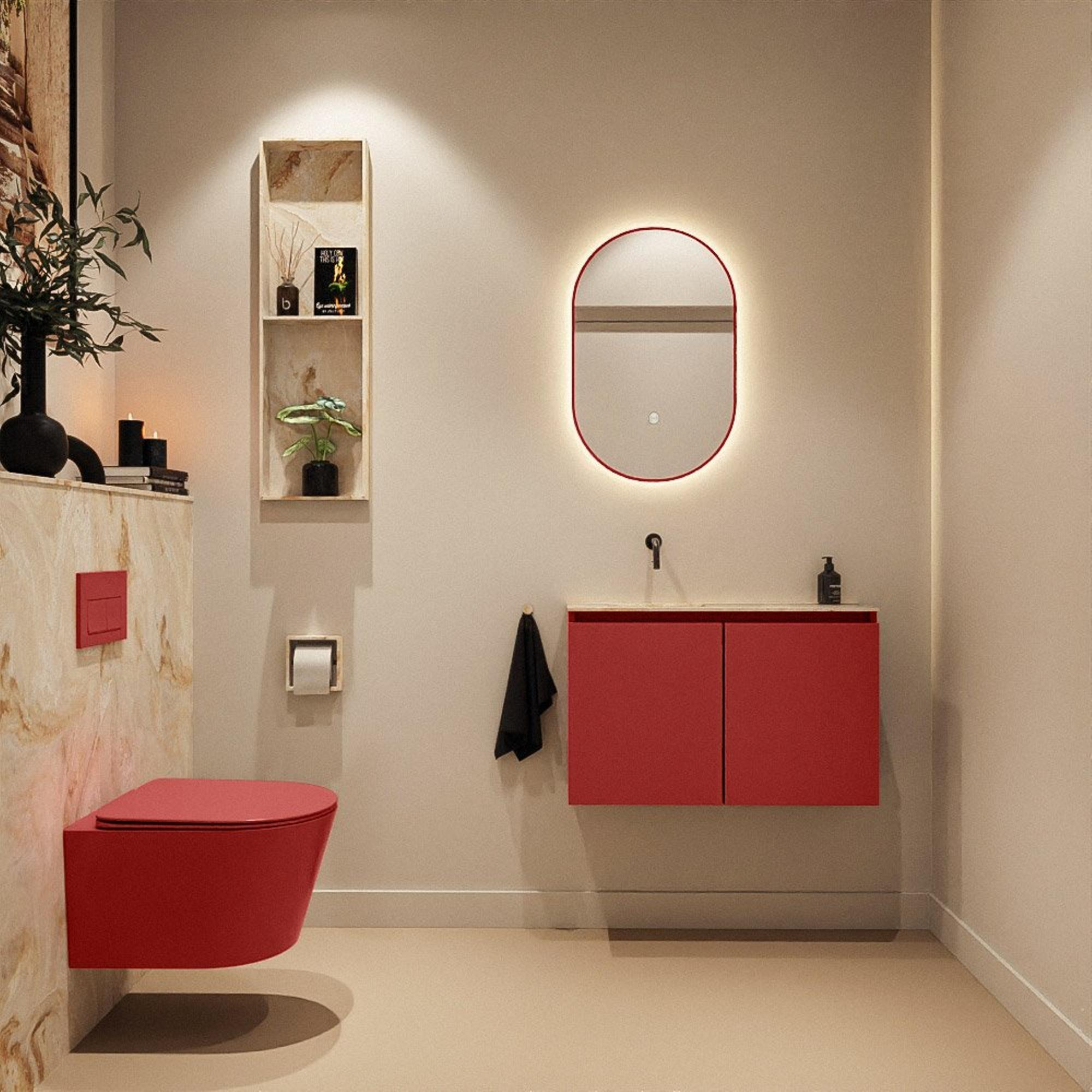 MONDIAZ TURE-DLUX 80cm toiletmeubel Fire. EDEN wastafel Frappe positie links. Zonder kraangat.