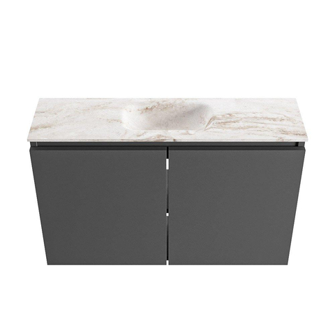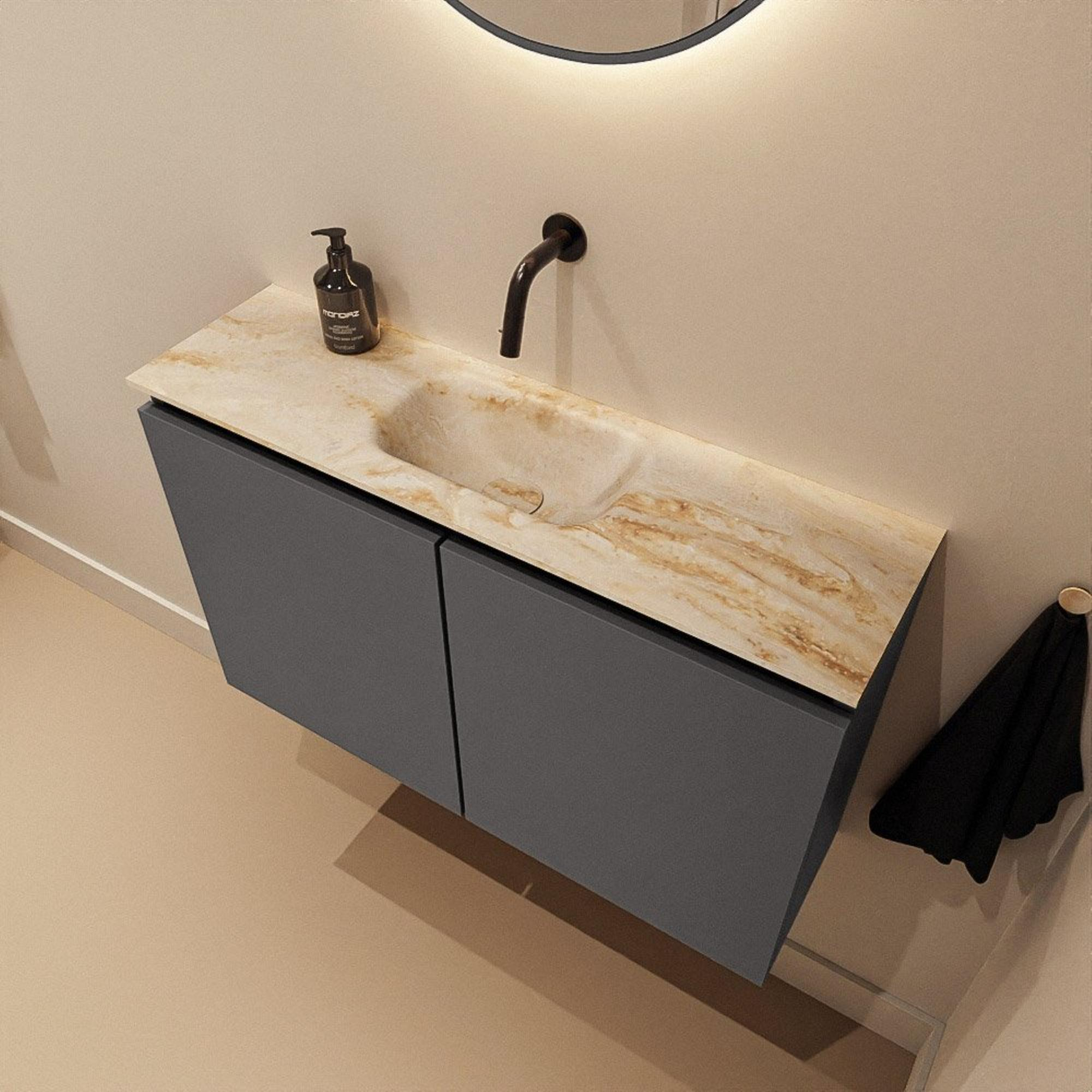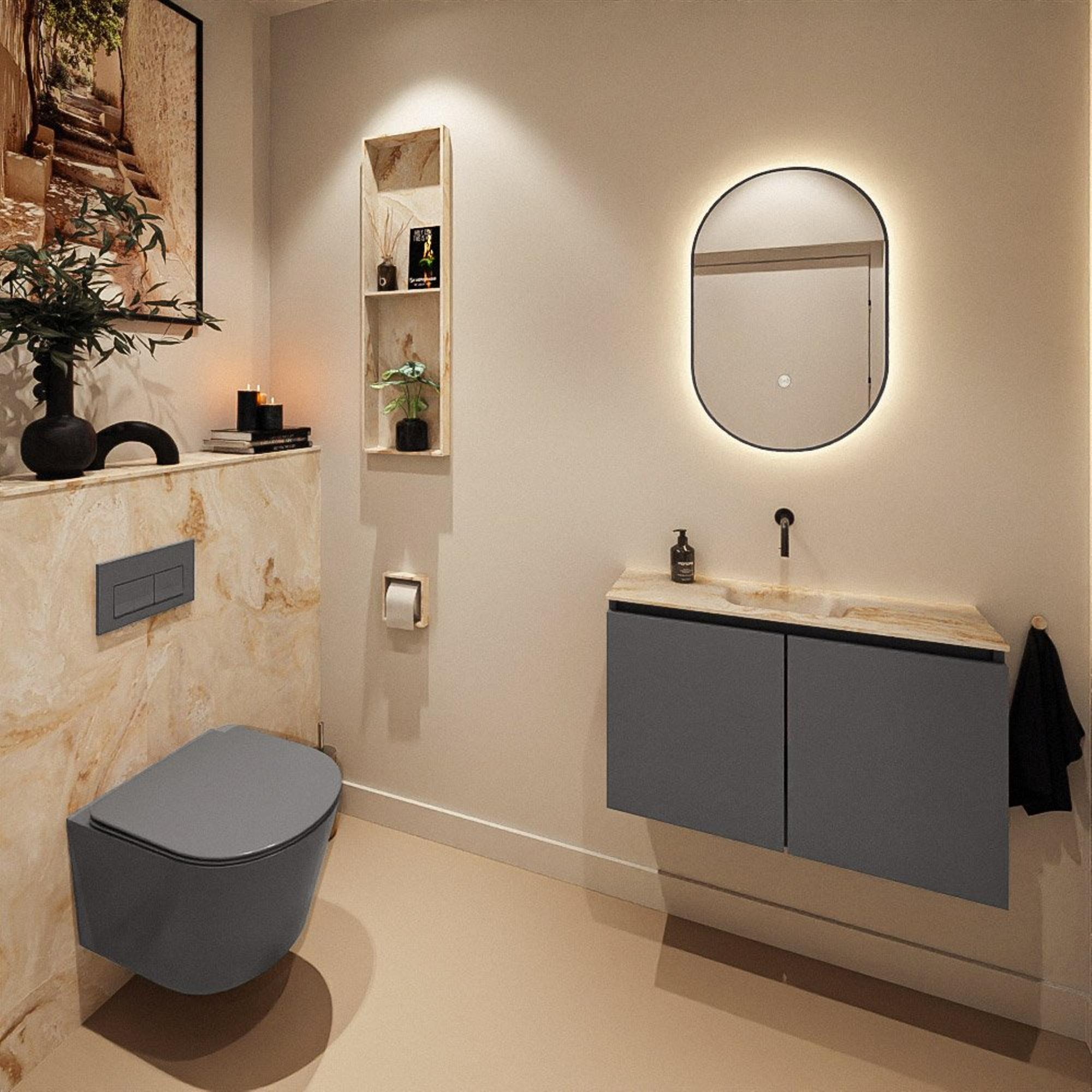 MONDIAZ TURE-DLUX 80cm toiletmeubel Dark Grey. EDEN wastafel Frappe positie midden. Zonder kraangat.