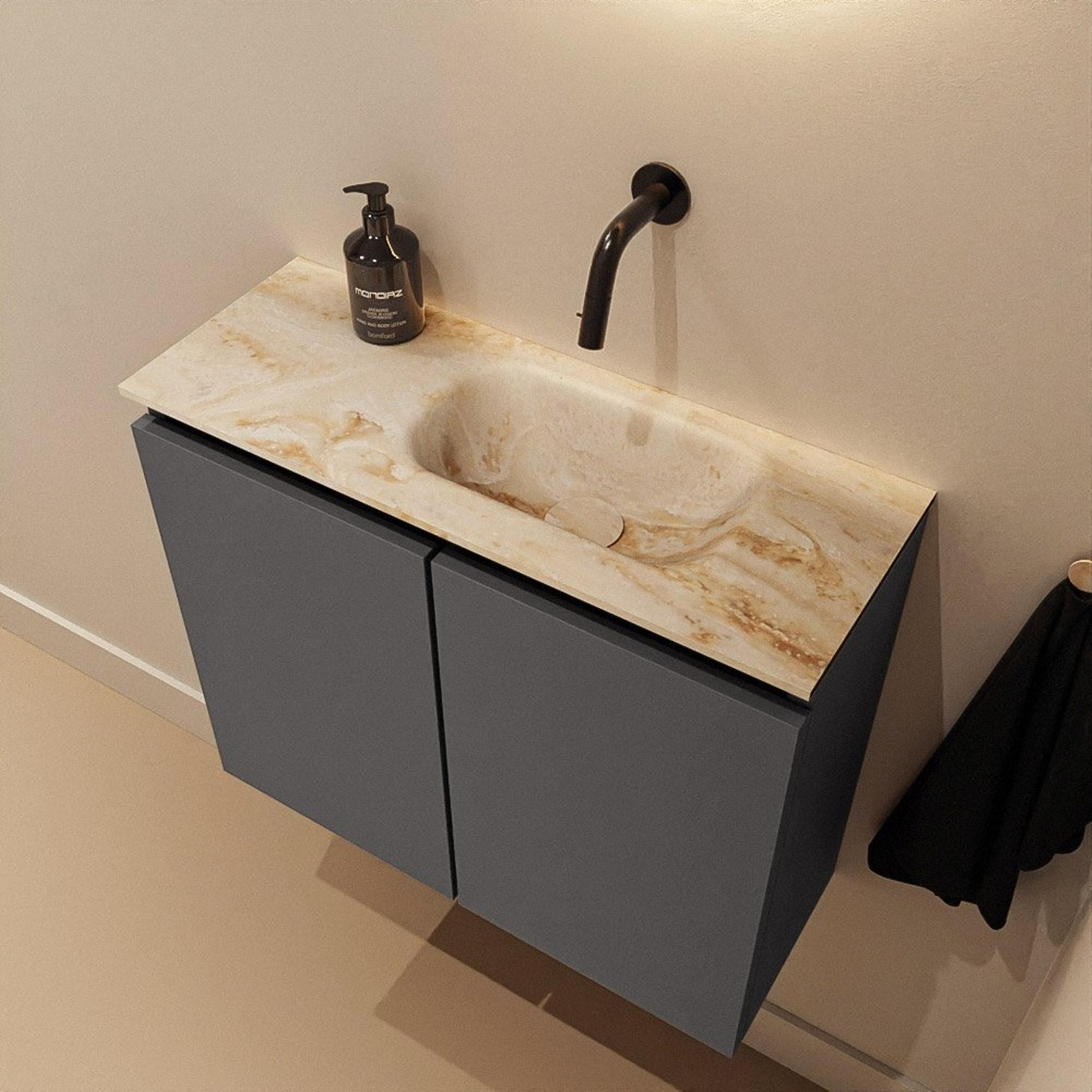 MONDIAZ TURE-DLUX 60cm toiletmeubel Dark Grey. EDEN wastafel Frappe positie rechts. Zonder kraangat.