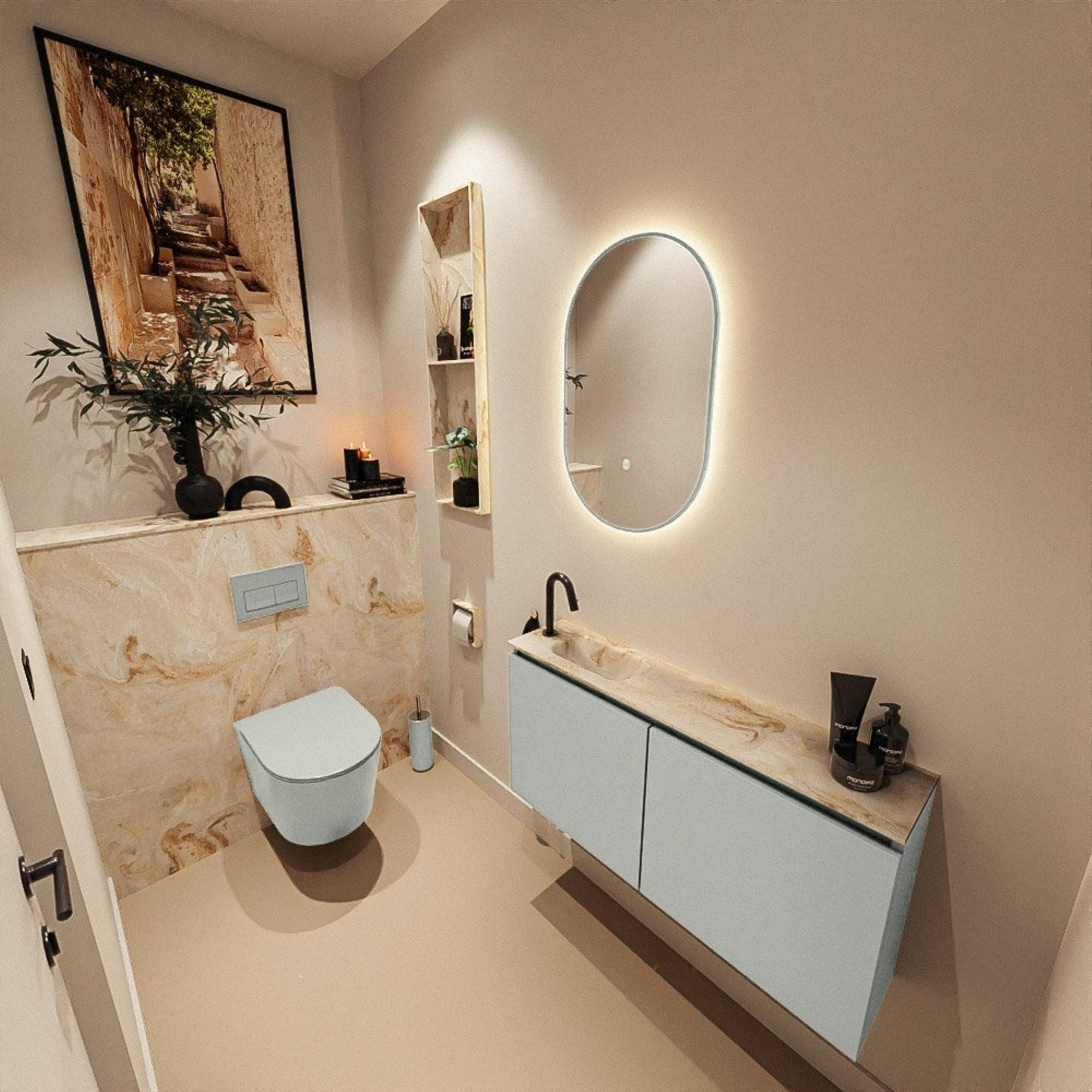 MONDIAZ TURE-DLUX 100cm toiletmeubel Greey. EDEN wastafel Frappe positie links. Met 1 kraangat.