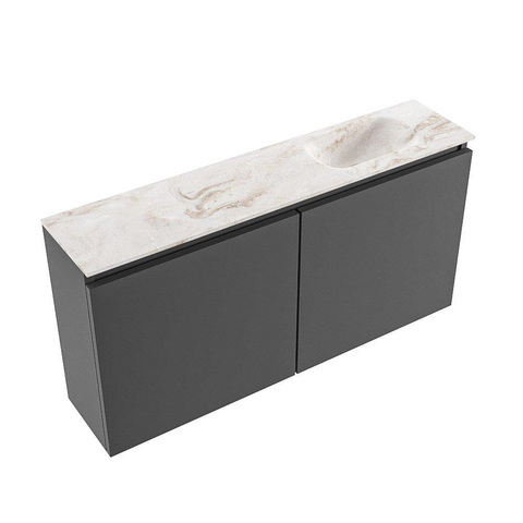 MONDIAZ TURE-DLUX 100cm toiletmeubel Dark Grey. EDEN wastafel Frappe positie rechts. Met 1 kraangat.