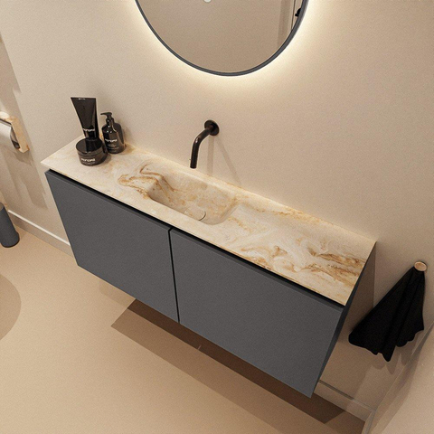 MONDIAZ TURE-DLUX 100cm toiletmeubel Dark Grey. EDEN wastafel Frappe positie midden. Zonder kraangat.