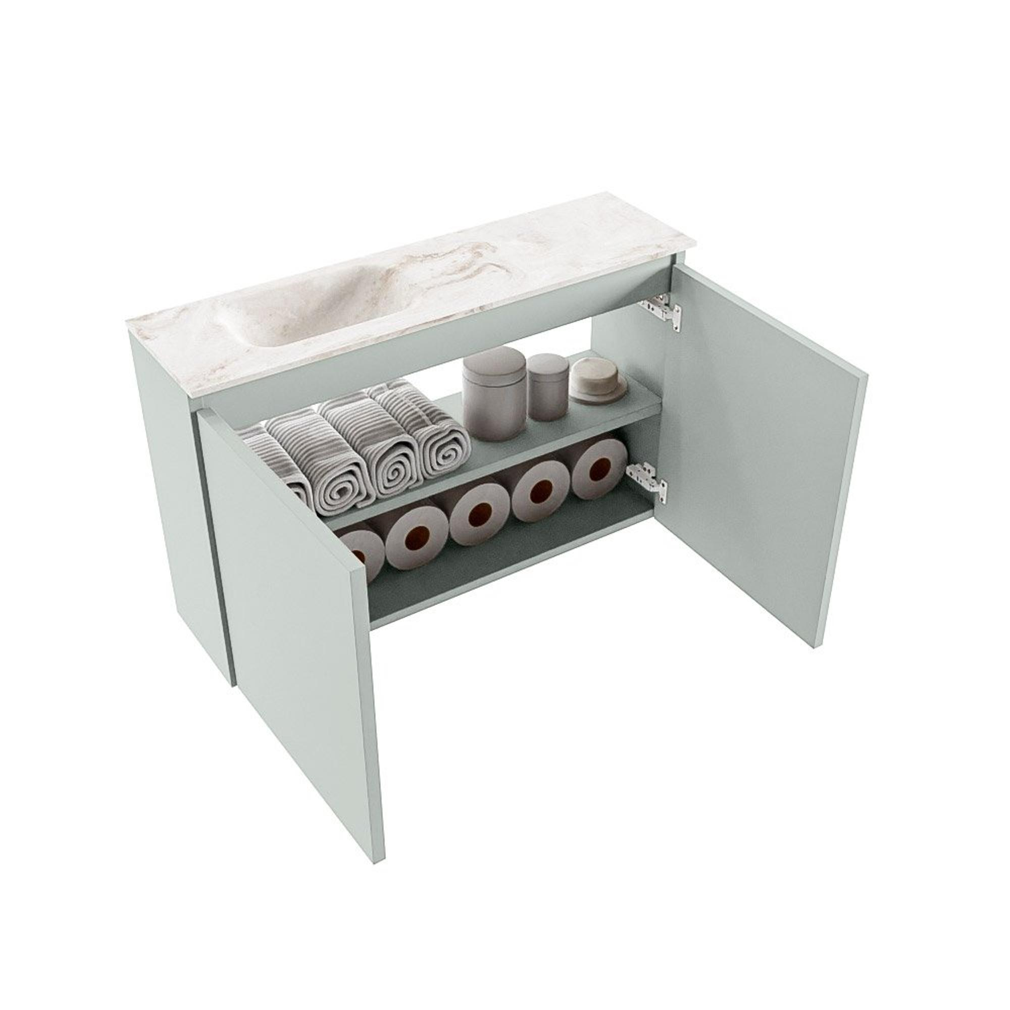 MONDIAZ TURE-DLUX 80cm toiletmeubel Greey. EDEN wastafel Frappe positie links. Zonder kraangat.
