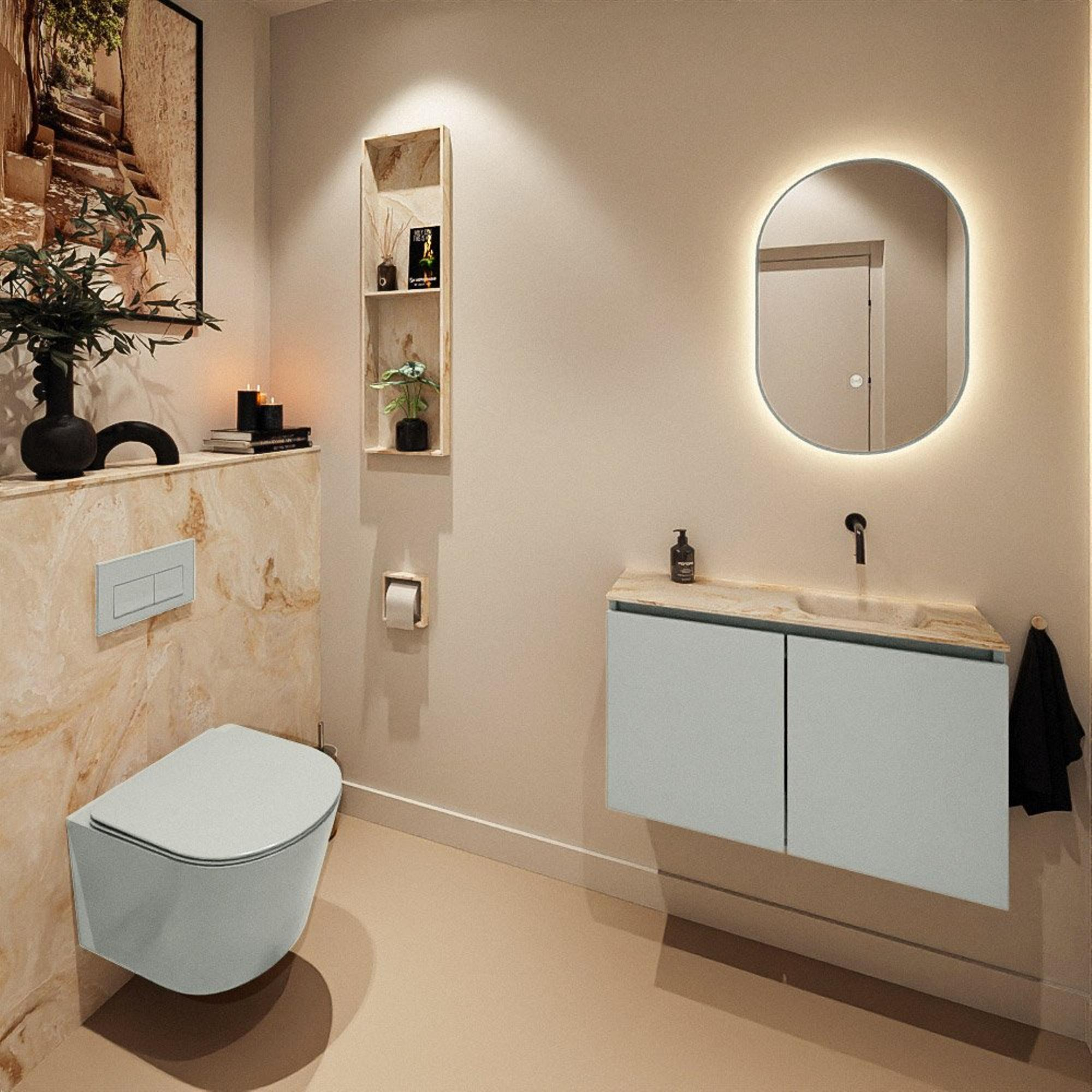 MONDIAZ TURE-DLUX 80cm toiletmeubel Greey. EDEN wastafel Frappe positie rechts. Zonder kraangat.