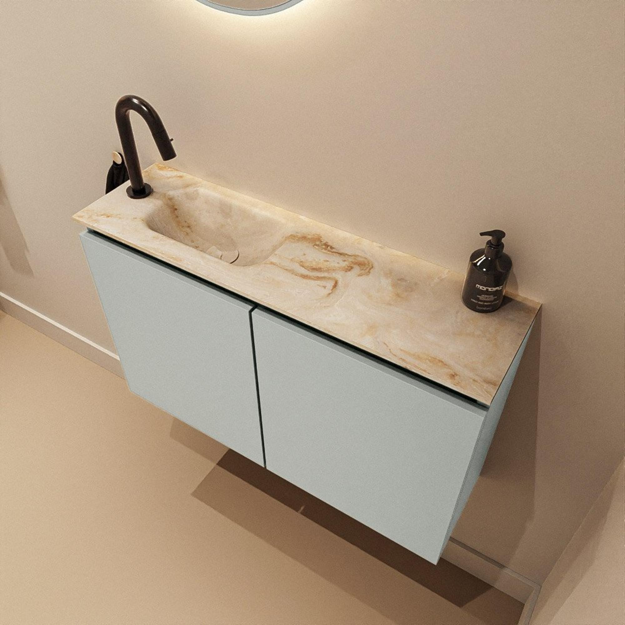 MONDIAZ TURE-DLUX 80cm toiletmeubel Greey. EDEN wastafel Frappe positie links. Met 1 kraangat.
