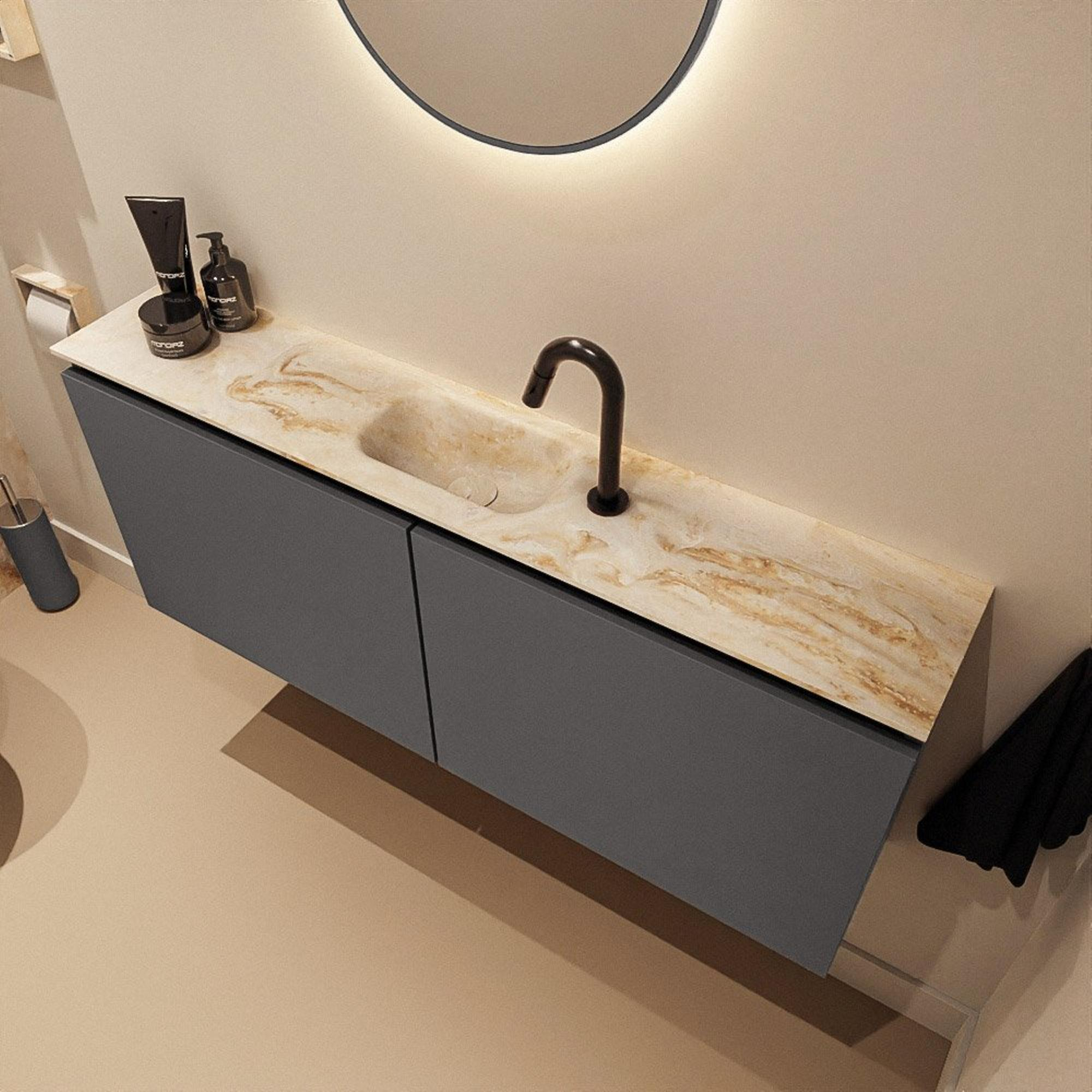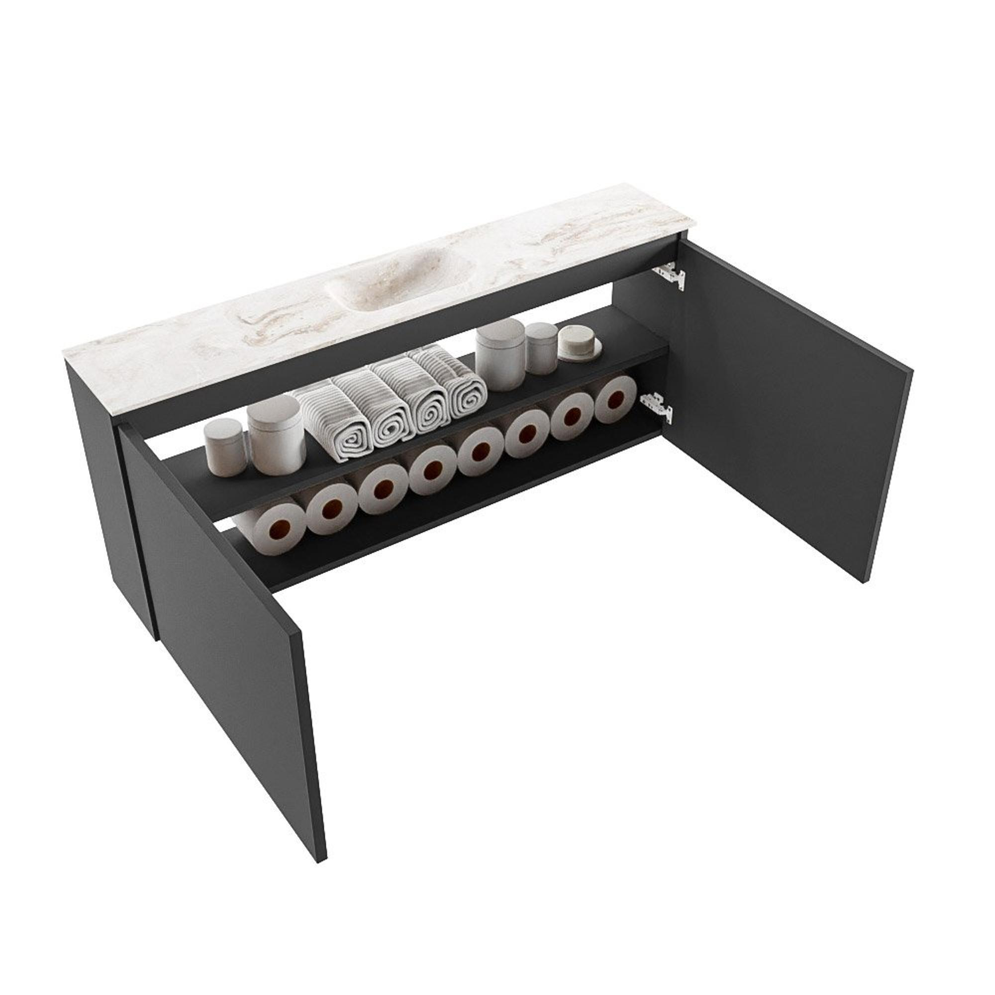 MONDIAZ TURE-DLUX 120cm toiletmeubel Dark Grey. EDEN wastafel Frappe positie midden. Met 1 kraangat.