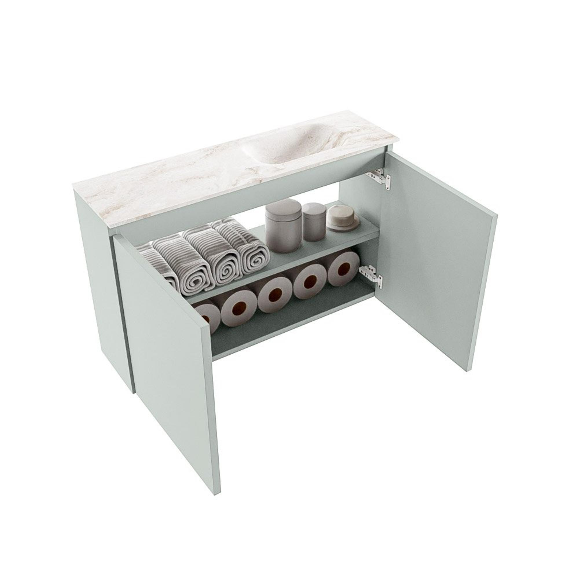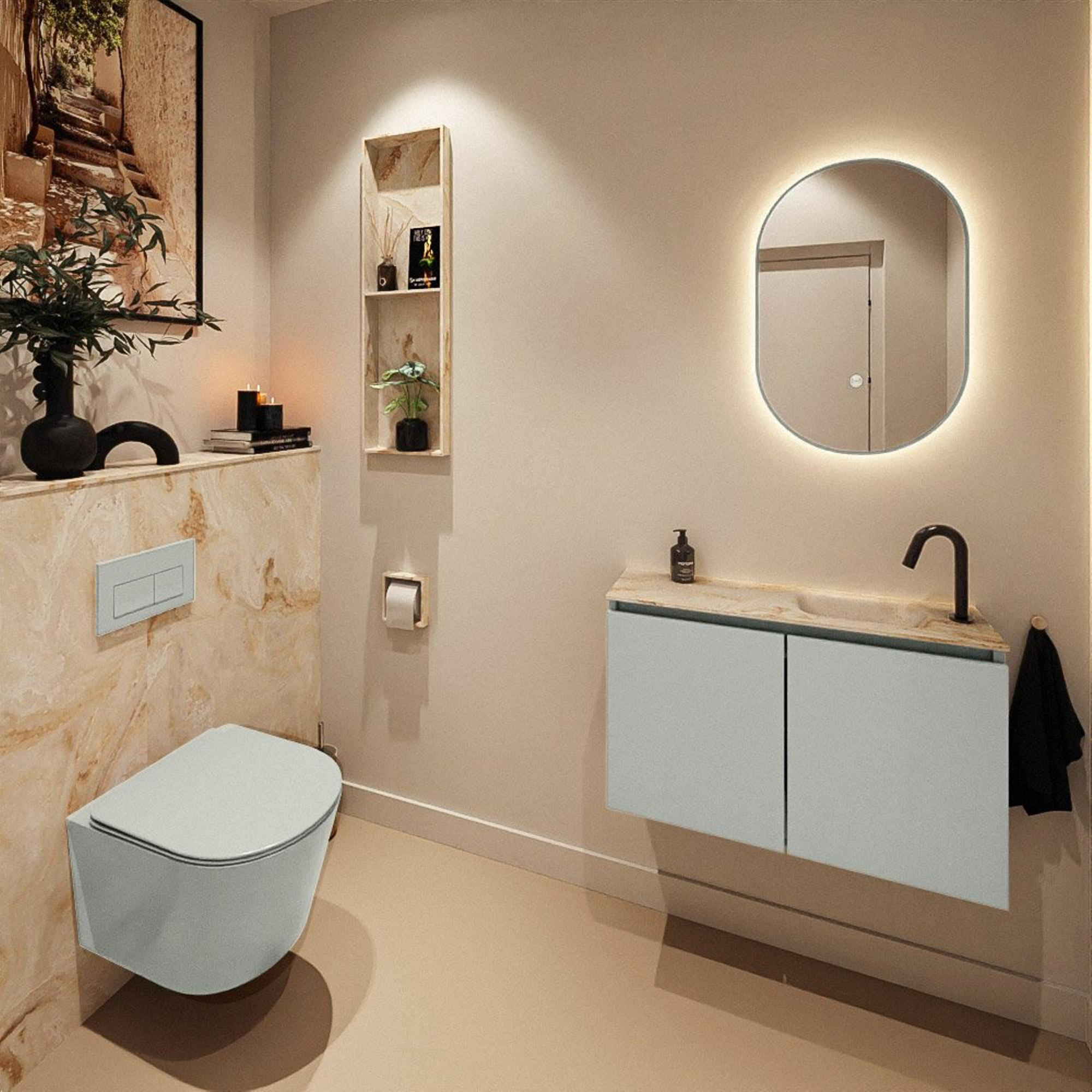 MONDIAZ TURE-DLUX 80cm toiletmeubel Greey. EDEN wastafel Frappe positie rechts. Met 1 kraangat.