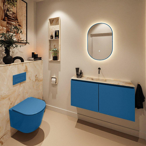 MONDIAZ TURE-DLUX 100cm toiletmeubel Jeans. EDEN wastafel Frappe positie midden. Zonder kraangat.