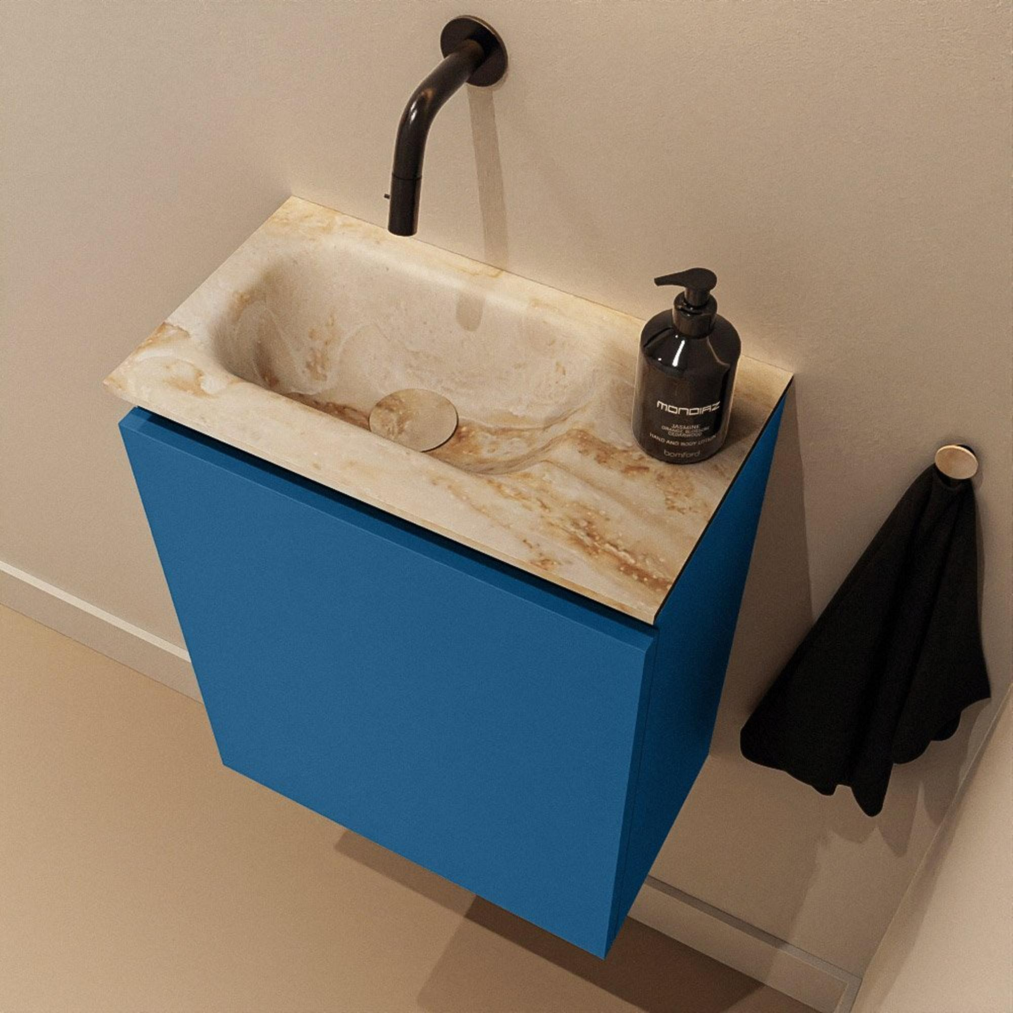 MONDIAZ TURE-DLUX 40cm toiletmeubel Jeans. EDEN wastafel Frappe positie links. Zonder kraangat.