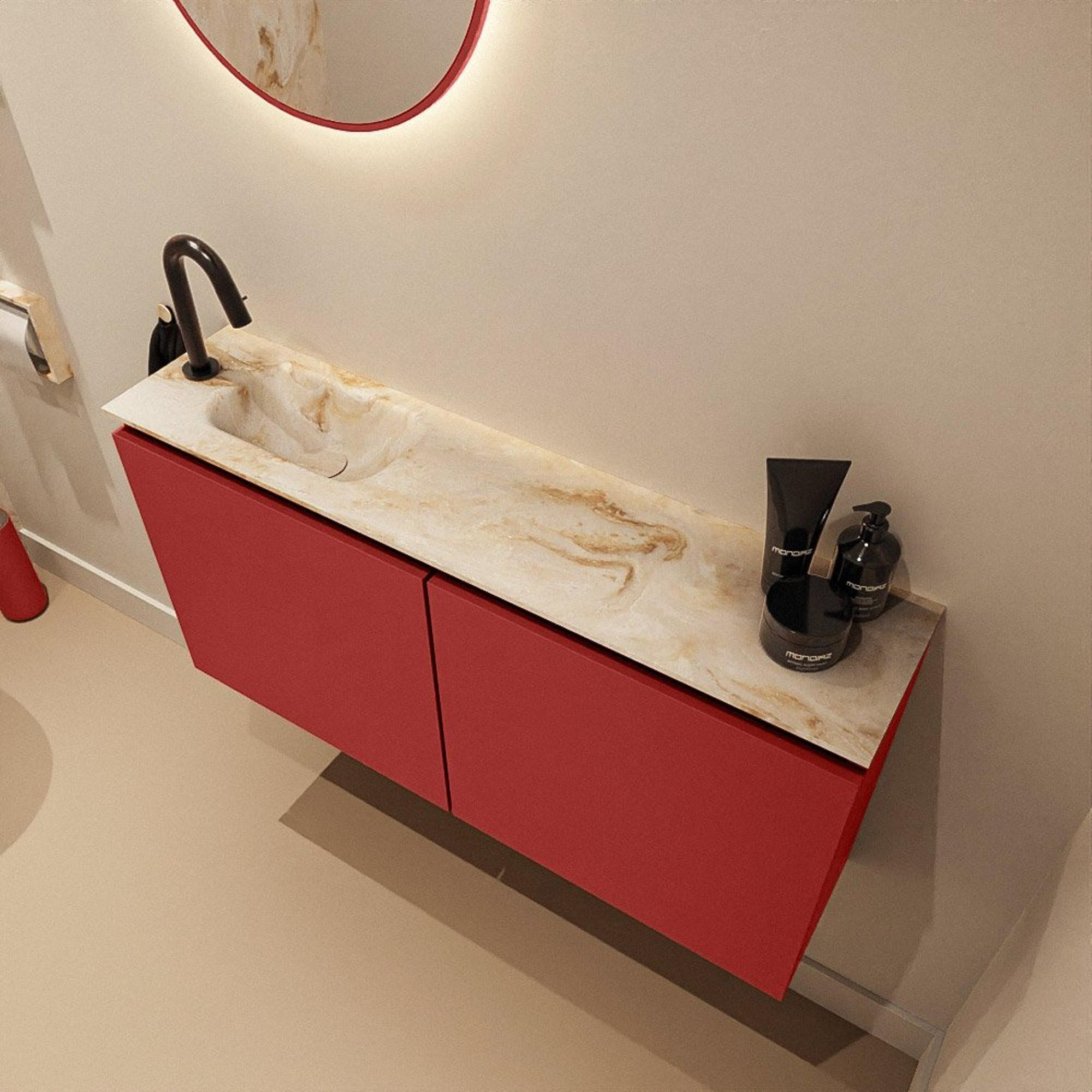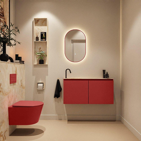 MONDIAZ TURE-DLUX 100cm toiletmeubel Fire. EDEN wastafel Frappe positie links. Met 1 kraangat.
