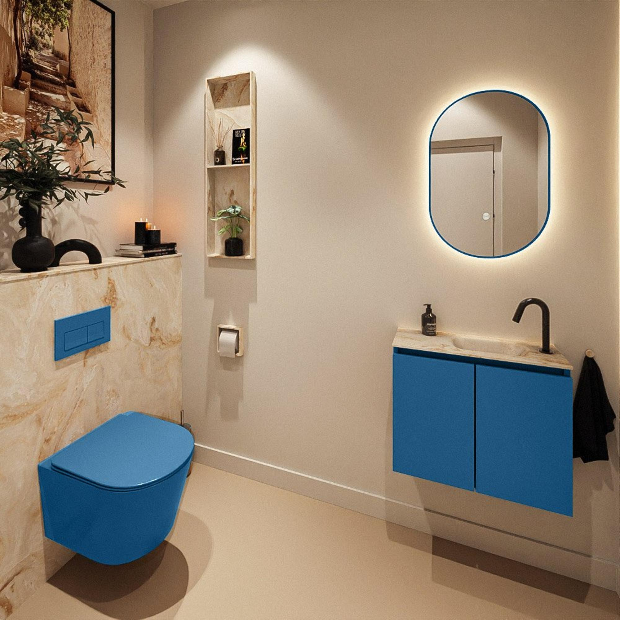 MONDIAZ TURE-DLUX 60cm toiletmeubel Jeans. EDEN wastafel Frappe positie rechts. Met 1 kraangat.
