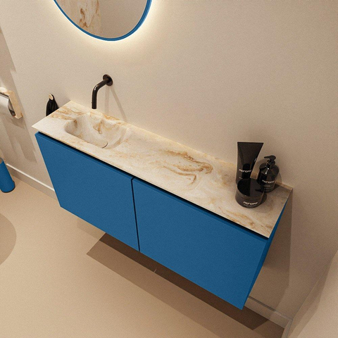 MONDIAZ TURE-DLUX 100cm toiletmeubel Jeans. EDEN wastafel Frappe positie links. Zonder kraangat.