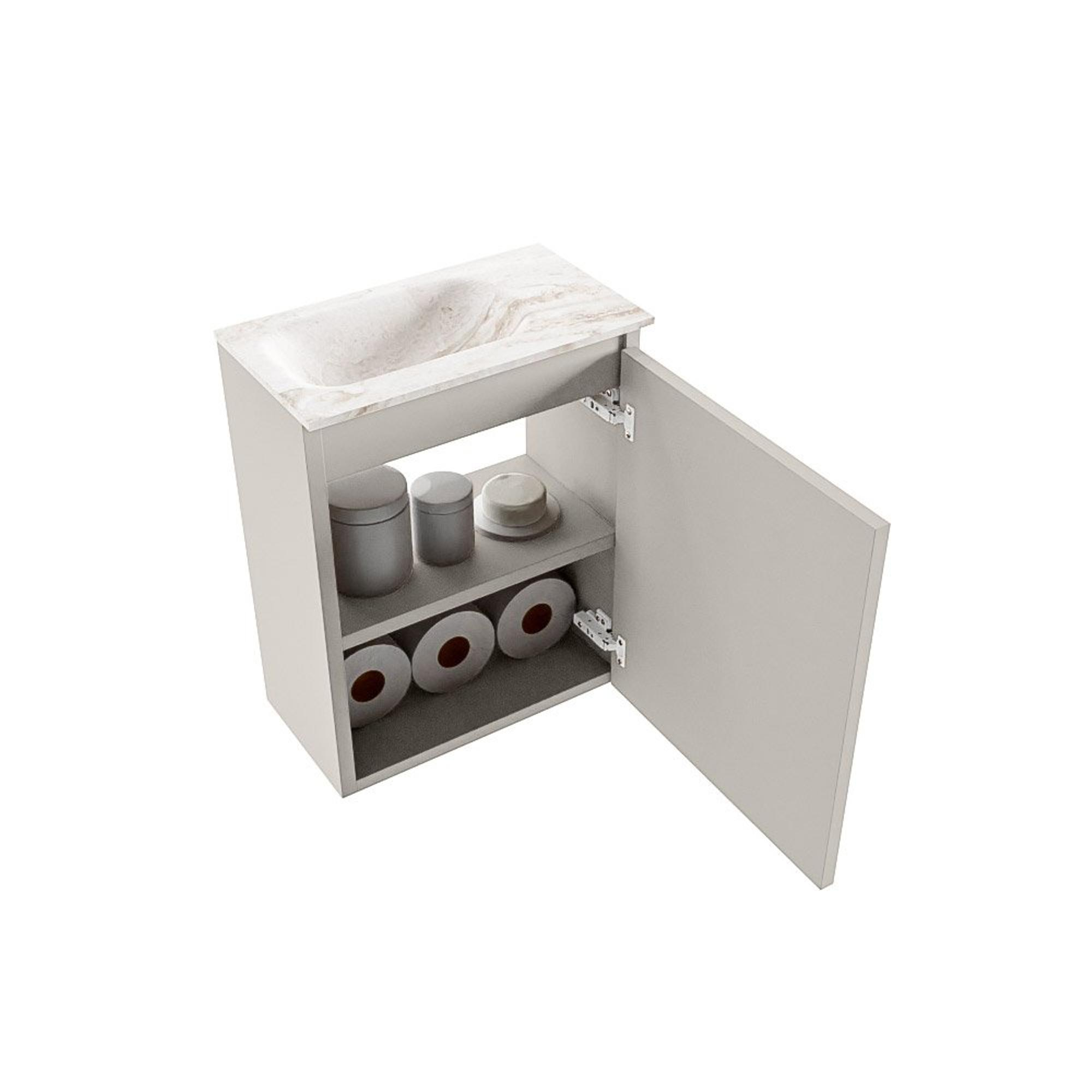 MONDIAZ TURE-DLUX 40cm toiletmeubel Linen. EDEN wastafel Frappe positie links. Met 1 kraangat.