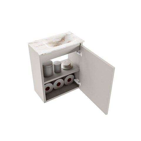 MONDIAZ TURE-DLUX 40cm toiletmeubel Linen. EDEN wastafel Frappe positie rechts. Met 1 kraangat.