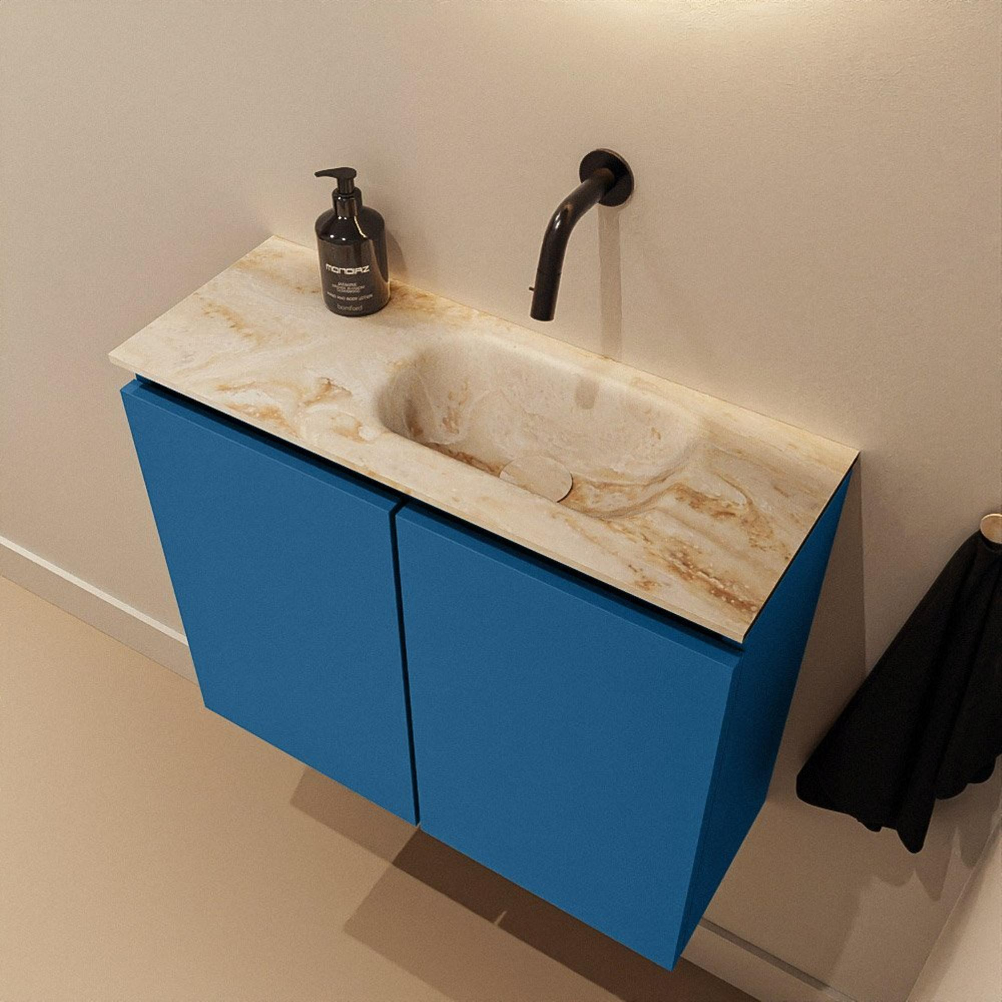 MONDIAZ TURE-DLUX 60cm toiletmeubel Jeans. EDEN wastafel Frappe positie rechts. Zonder kraangat.