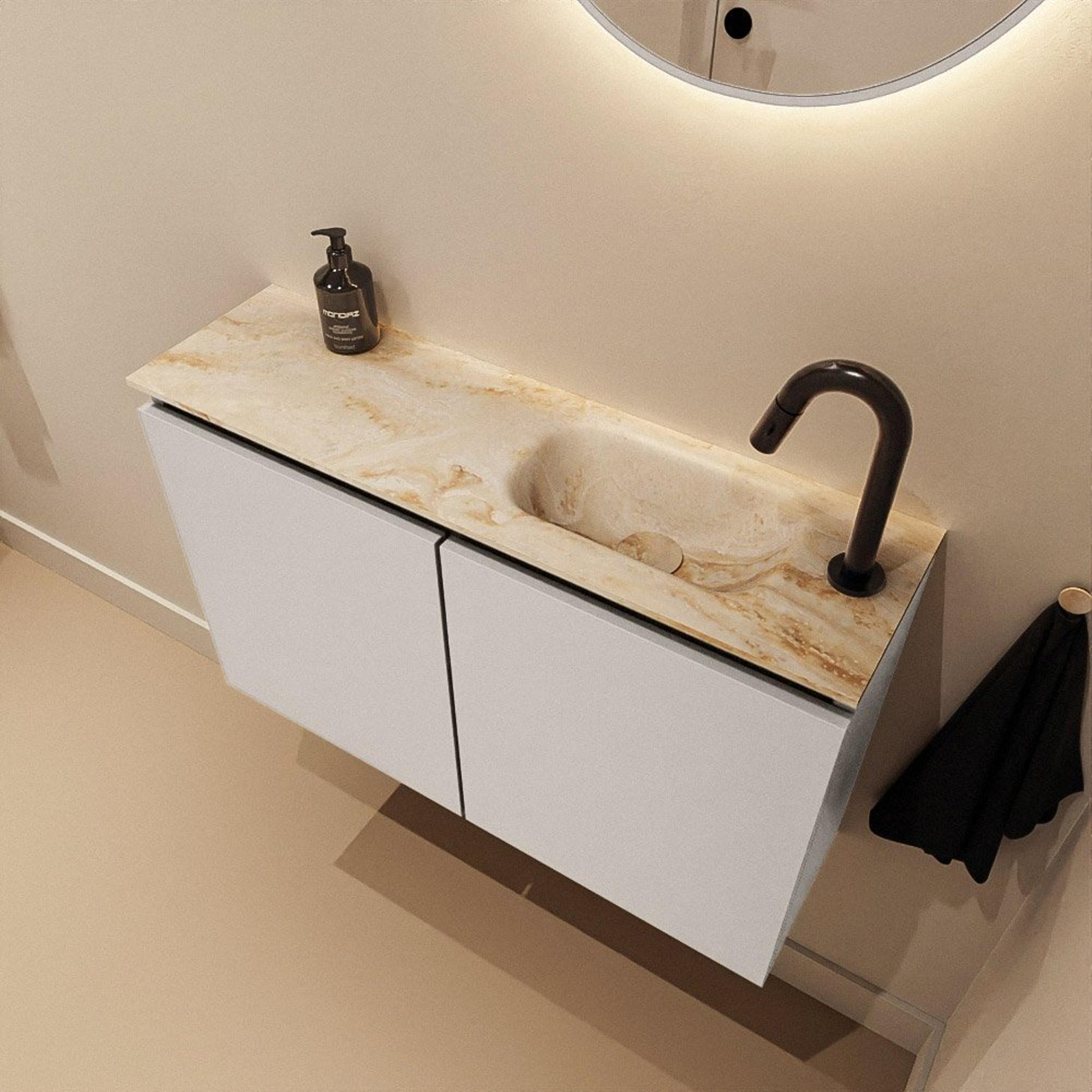MONDIAZ TURE-DLUX 80cm toiletmeubel Linen. EDEN wastafel Frappe positie rechts. Met 1 kraangat.