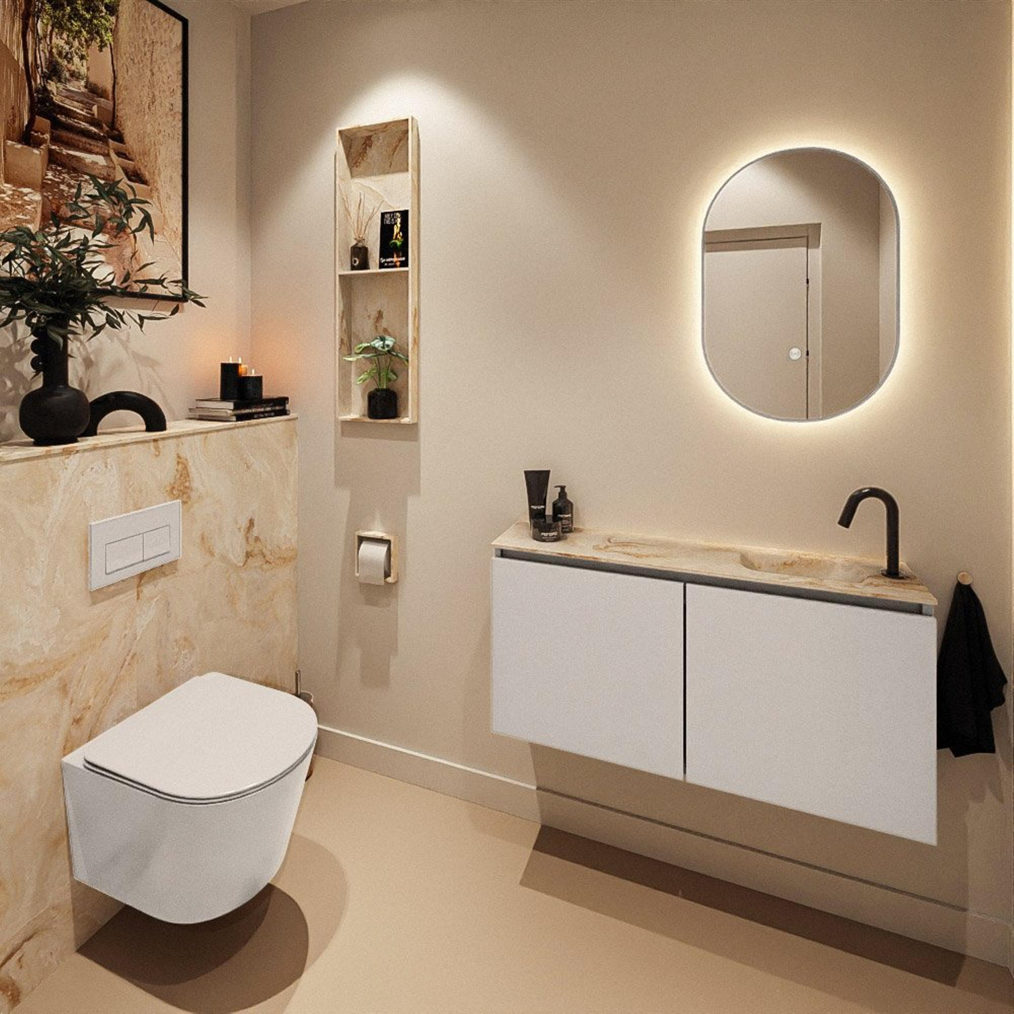MONDIAZ TURE-DLUX 100cm toiletmeubel Linen. EDEN wastafel Frappe positie rechts. Met 1 kraangat.