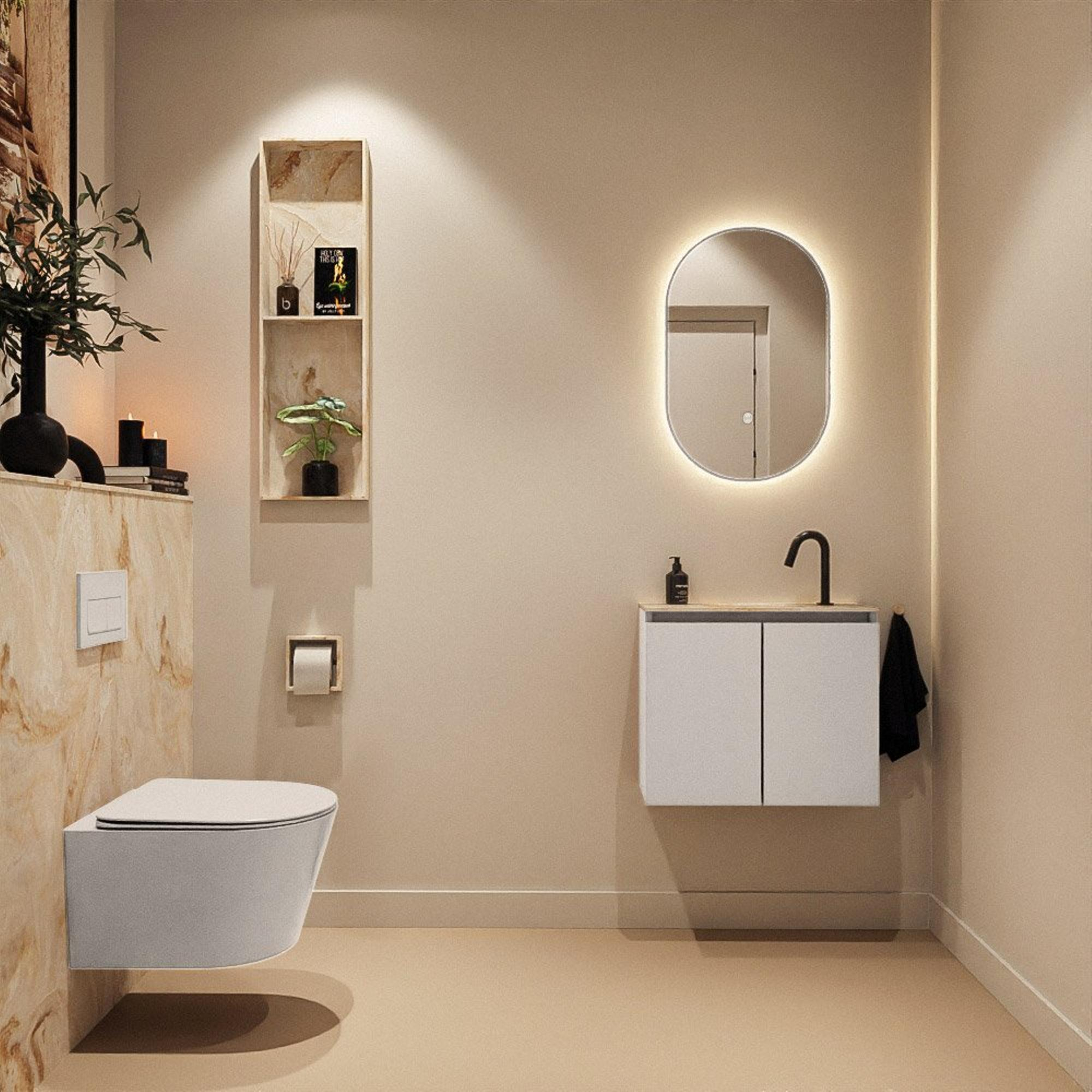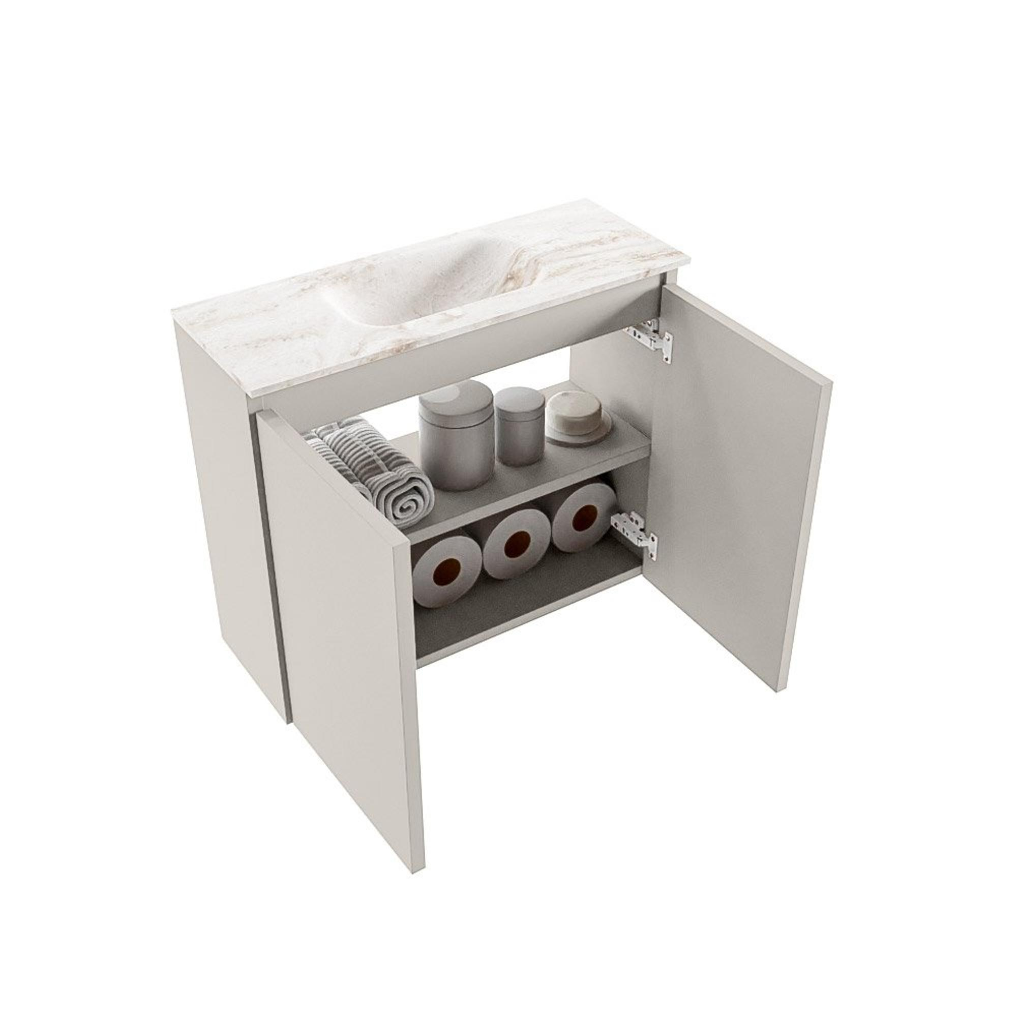 MONDIAZ TURE-DLUX 60cm toiletmeubel Linen. EDEN wastafel Frappe positie midden. Met 1 kraangat.