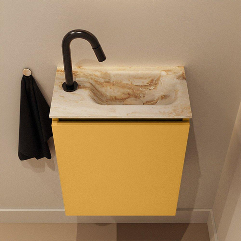 MONDIAZ TURE-DLUX 40cm toiletmeubel Ocher. EDEN wastafel Frappe positie rechts. Met 1 kraangat.