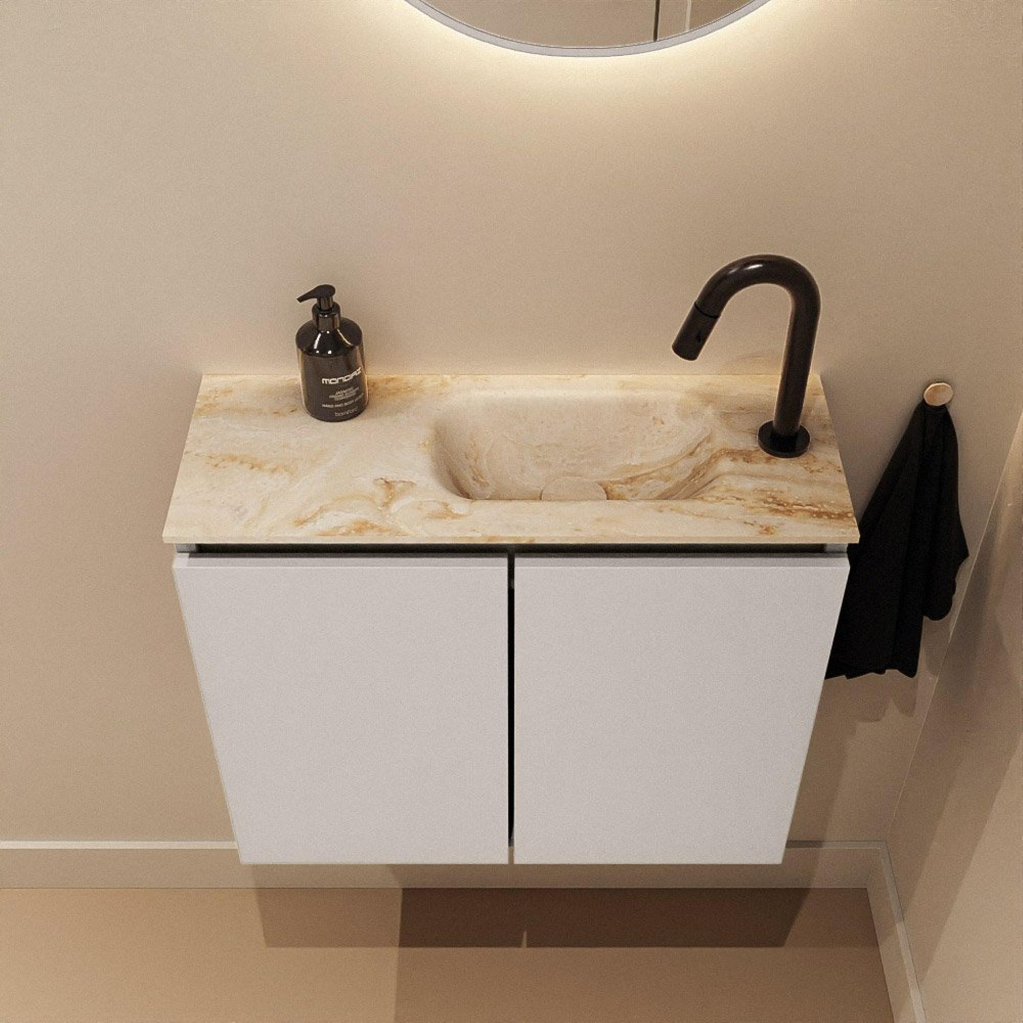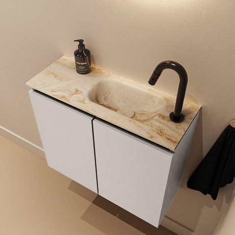 MONDIAZ TURE-DLUX 60cm toiletmeubel Linen. EDEN wastafel Frappe positie rechts. Met 1 kraangat.