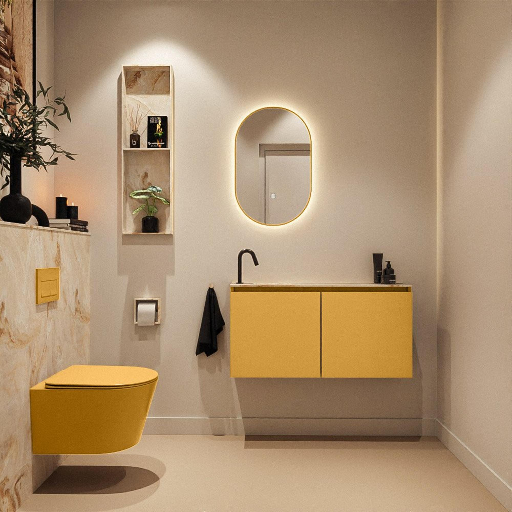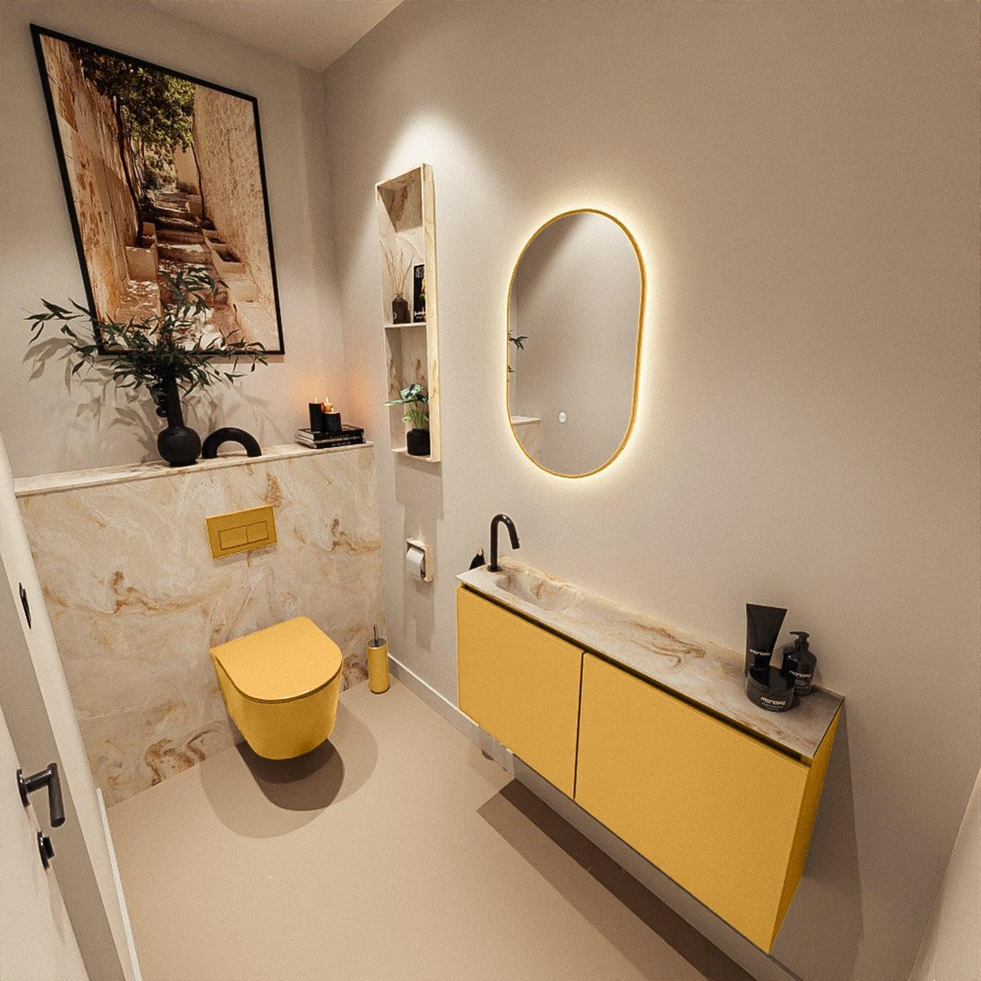 MONDIAZ TURE-DLUX 100cm toiletmeubel Ocher. EDEN wastafel Frappe positie links. Met 1 kraangat.