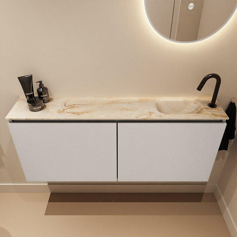 MONDIAZ TURE-DLUX 120cm toiletmeubel Linen. EDEN wastafel Frappe positie rechts. Met 1 kraangat.