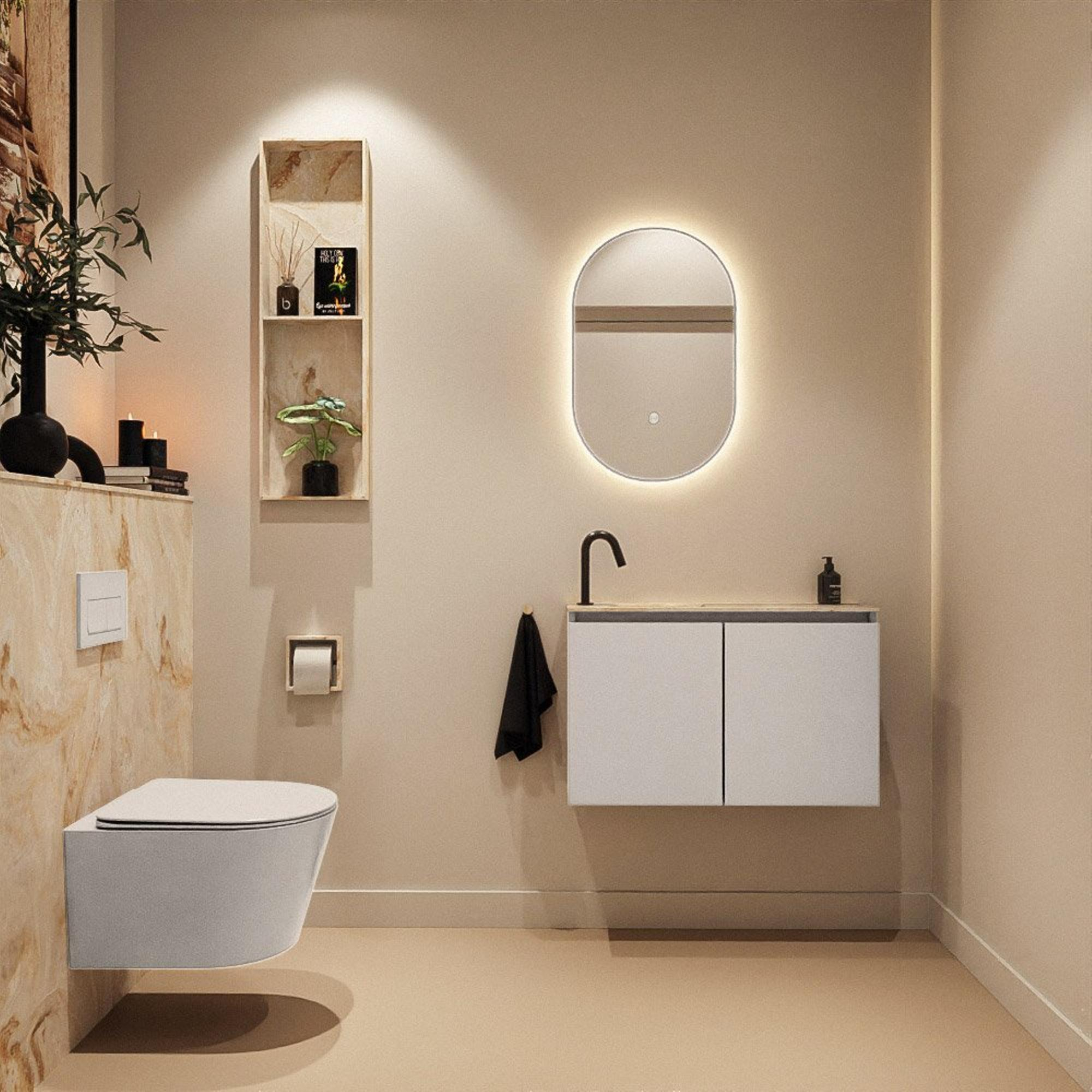 MONDIAZ TURE-DLUX 80cm toiletmeubel Linen. EDEN wastafel Frappe positie links. Met 1 kraangat.