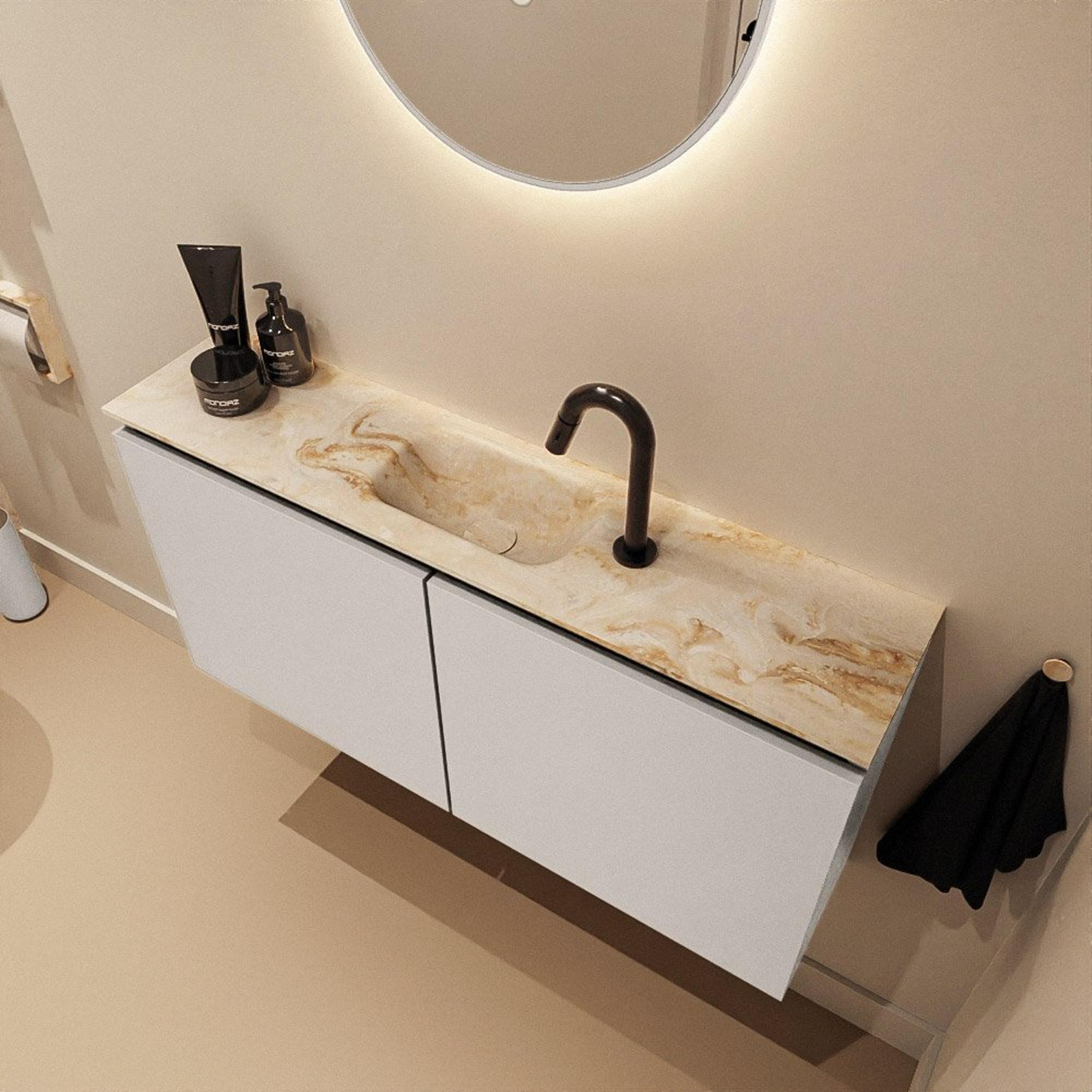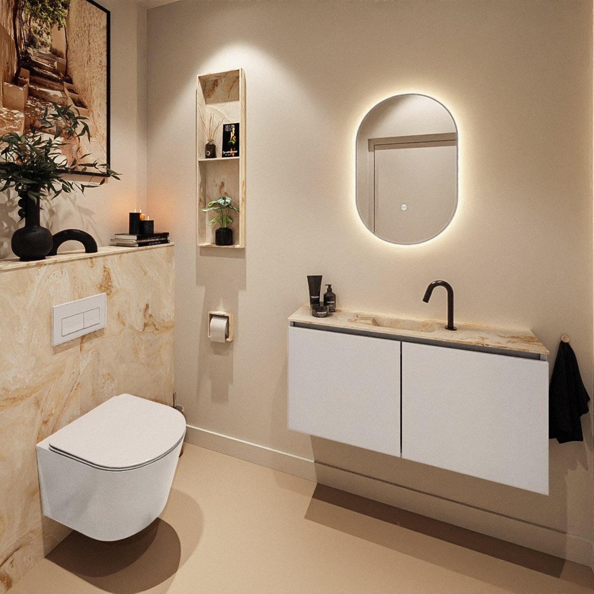 MONDIAZ TURE-DLUX 100cm toiletmeubel Linen. EDEN wastafel Frappe positie midden. Met 1 kraangat.