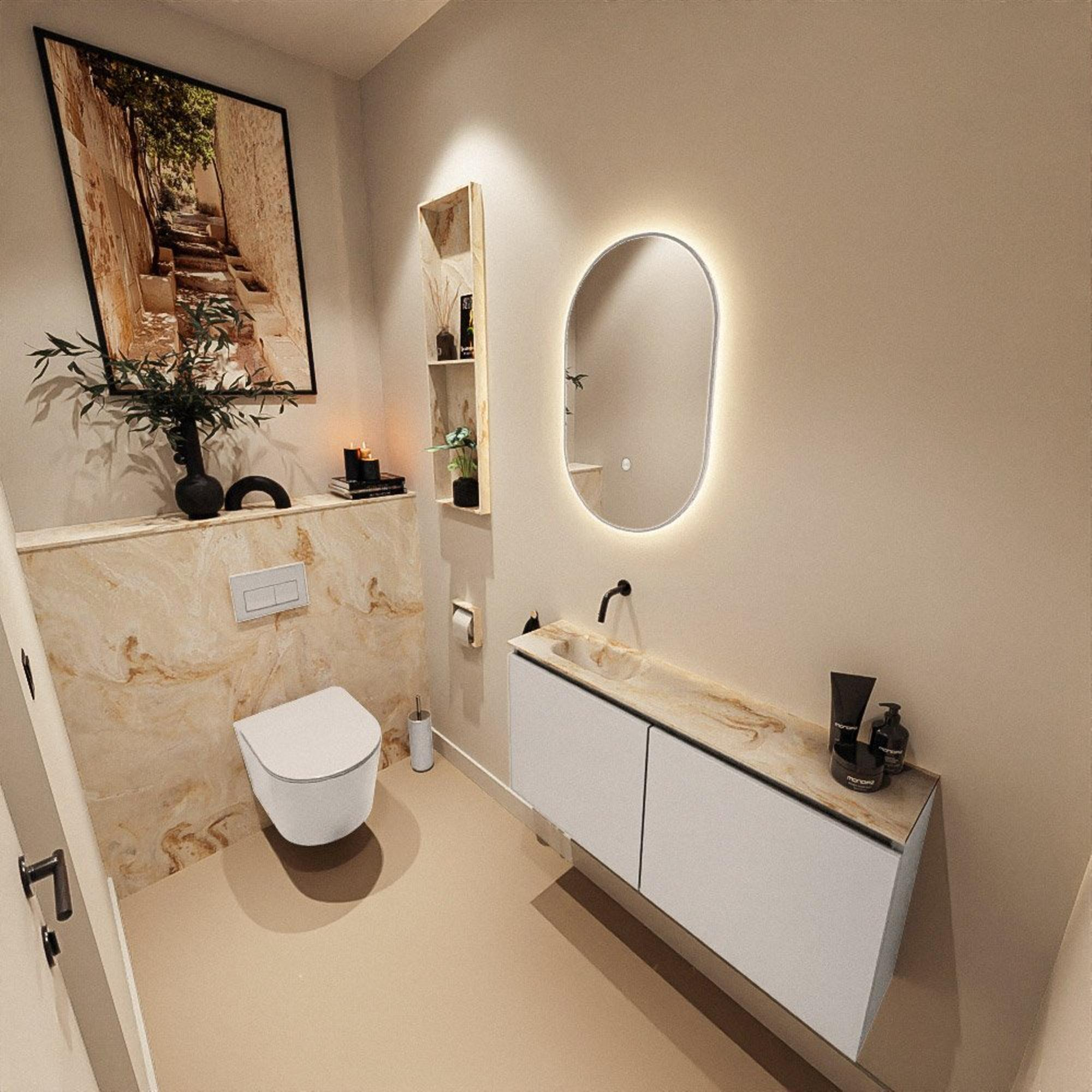MONDIAZ TURE-DLUX 100cm toiletmeubel Linen. EDEN wastafel Frappe positie links. Zonder kraangat.