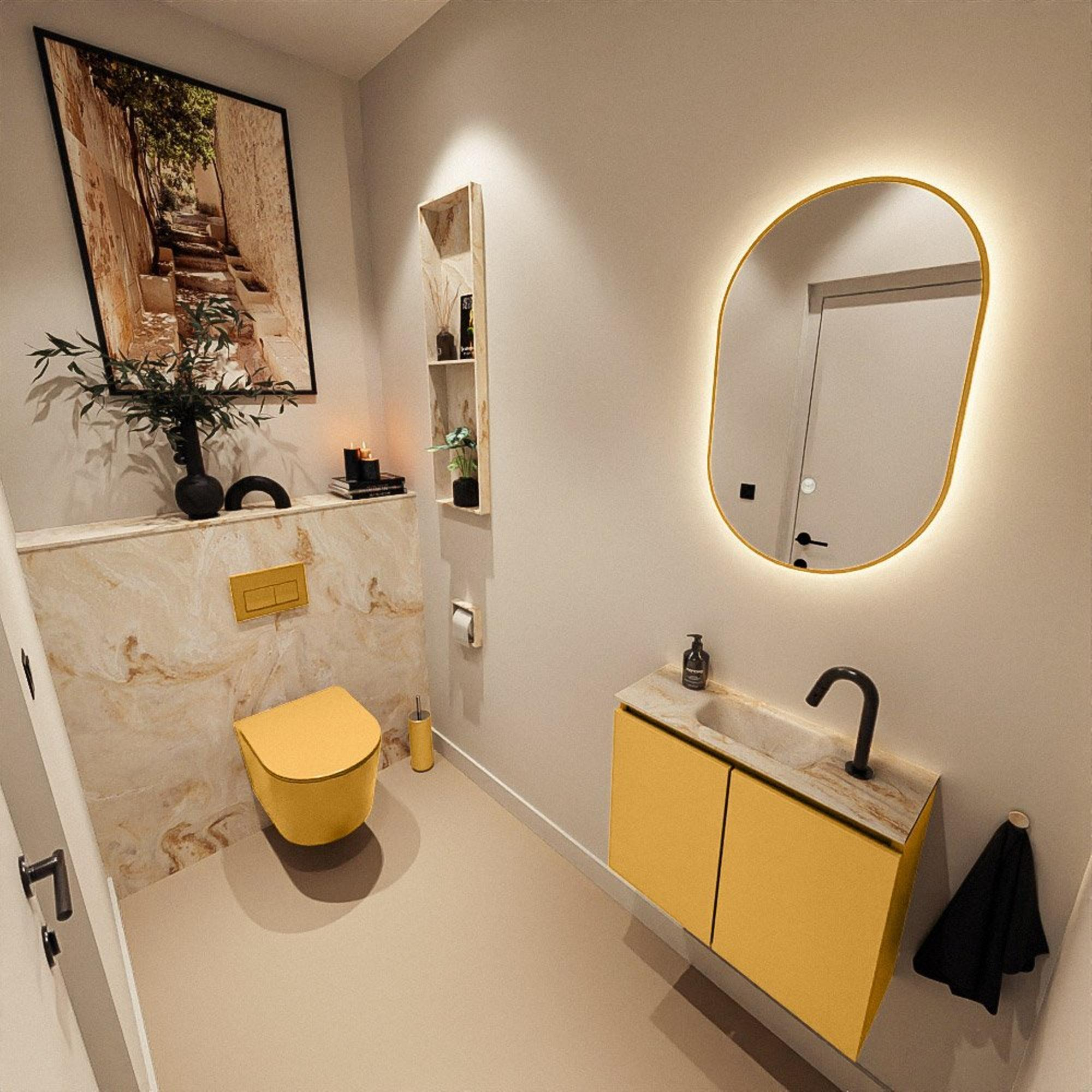 MONDIAZ TURE-DLUX 60cm toiletmeubel Ocher. EDEN wastafel Frappe positie midden. Met 1 kraangat.