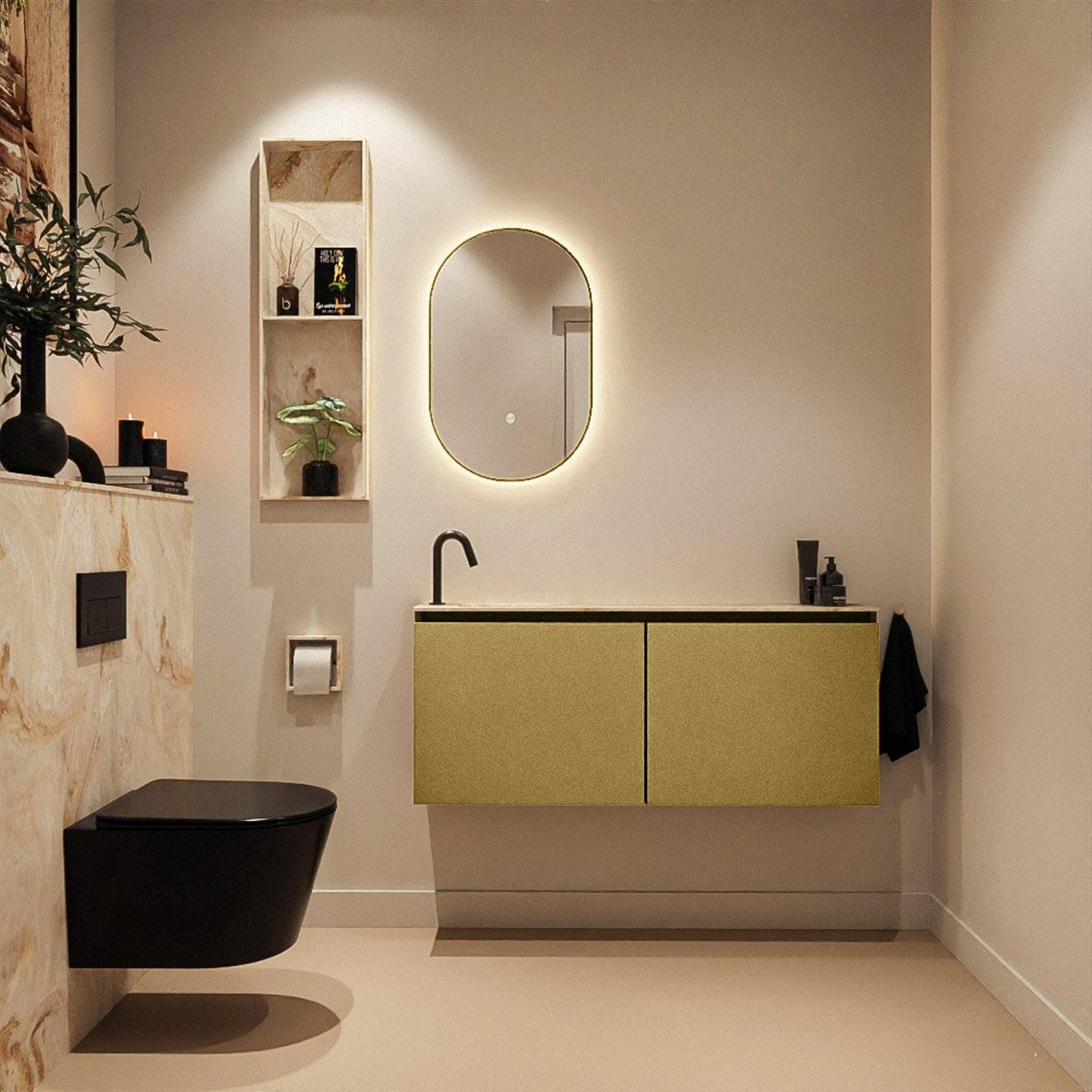 MONDIAZ TURE-DLUX 120cm toiletmeubel Oro. EDEN wastafel Frappe positie links. Met 1 kraangat.