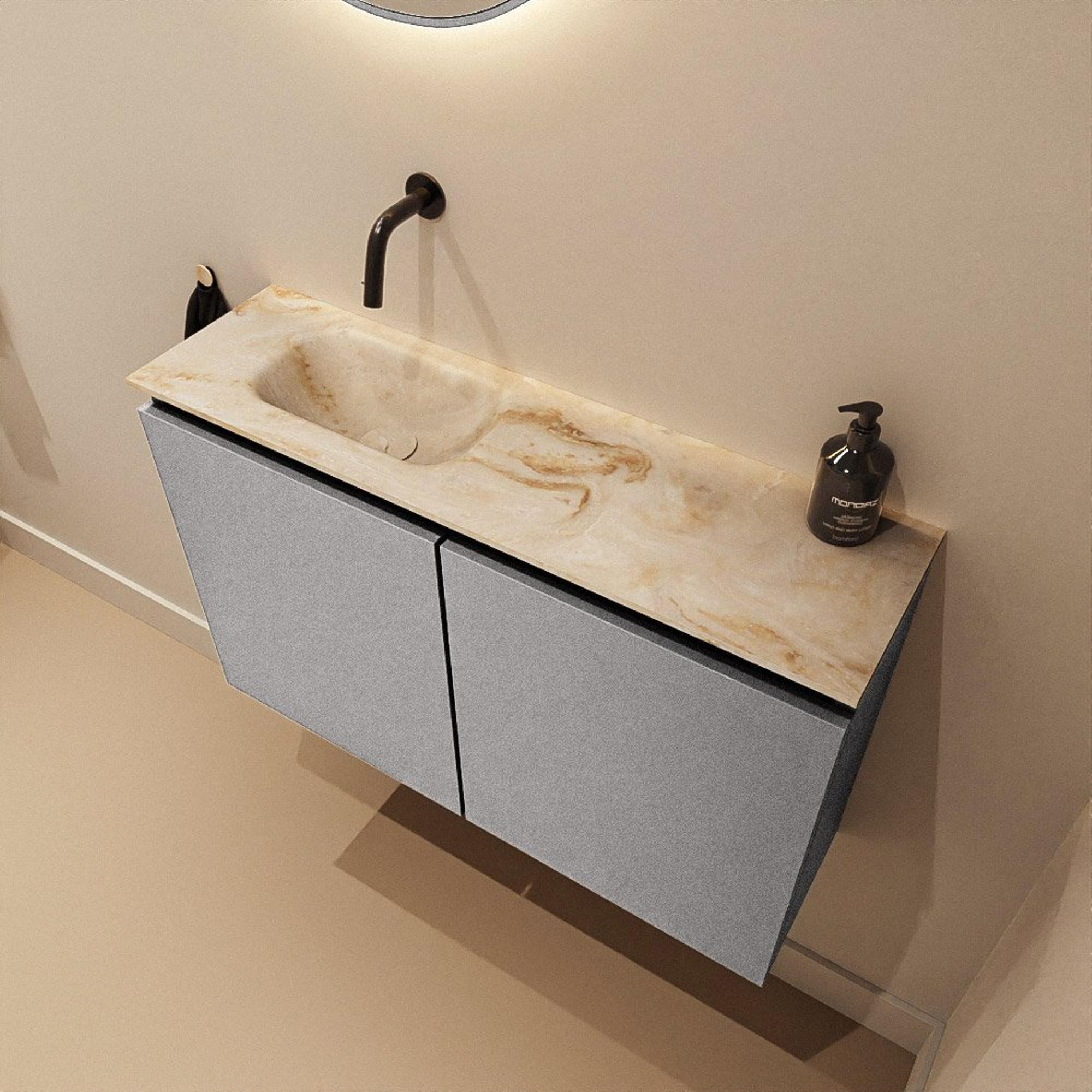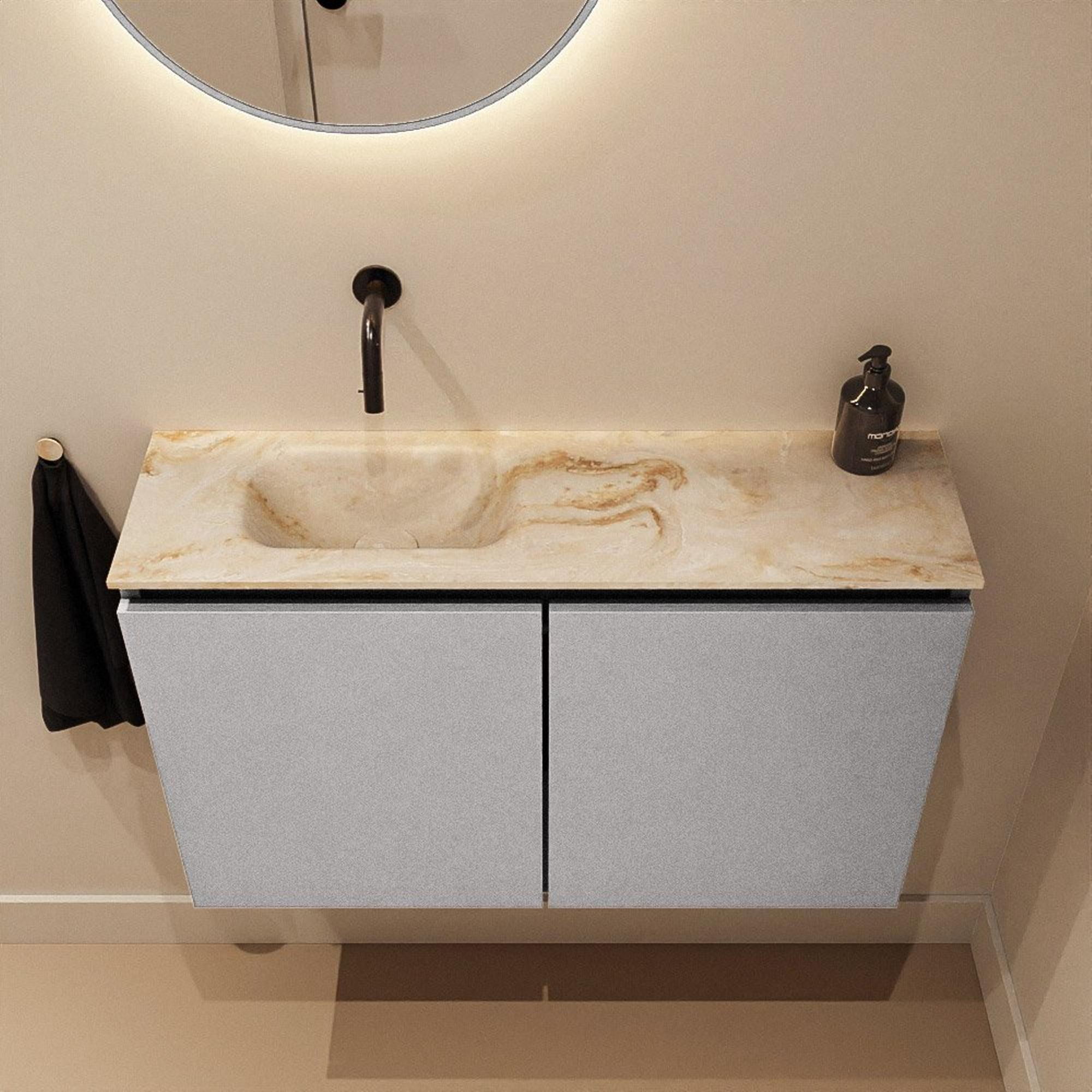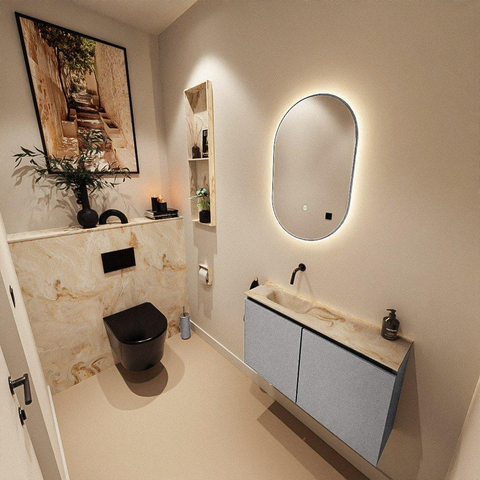 MONDIAZ TURE-DLUX 80cm toiletmeubel Plata. EDEN wastafel Frappe positie links. Zonder kraangat.