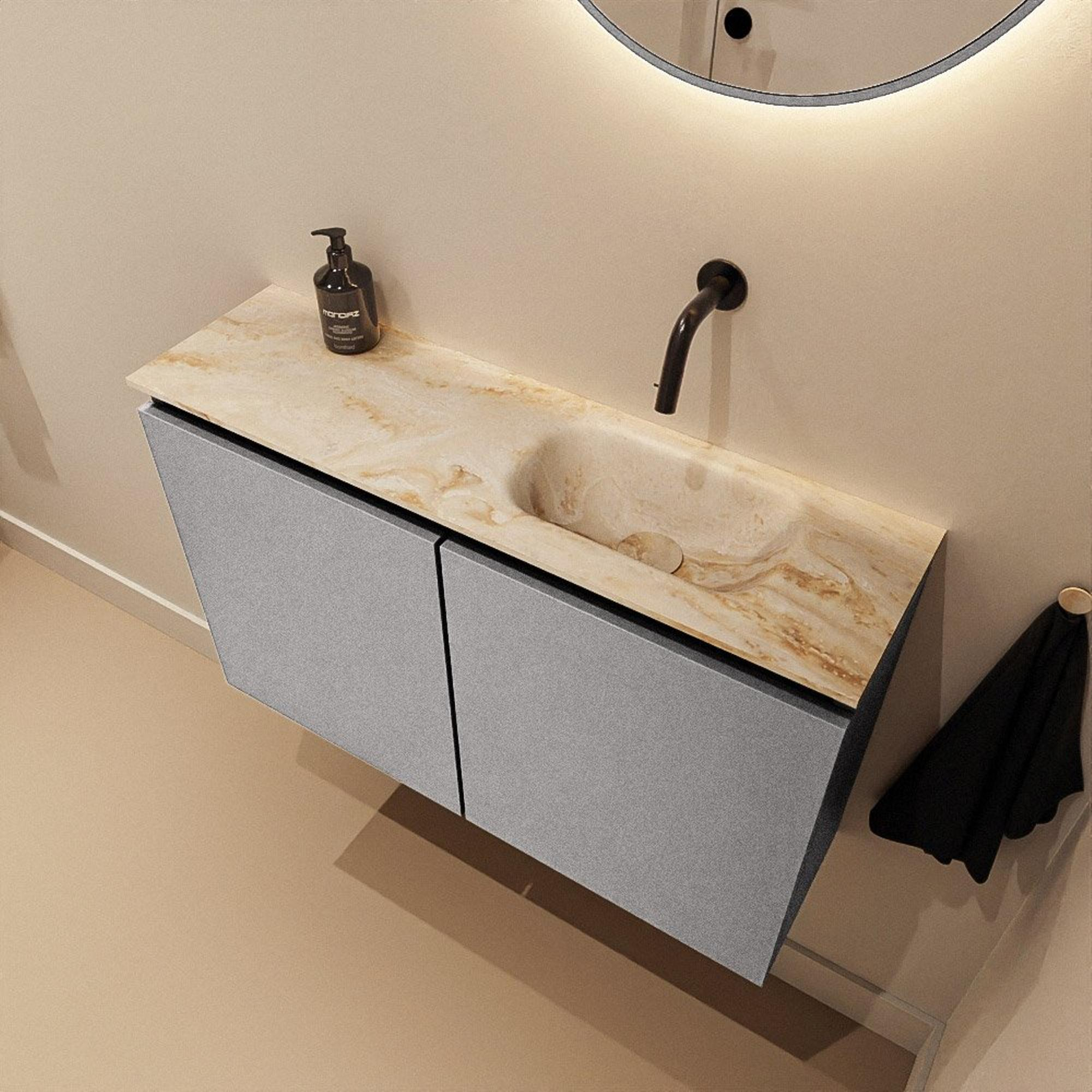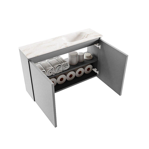 MONDIAZ TURE-DLUX 80cm toiletmeubel Plata. EDEN wastafel Frappe positie rechts. Zonder kraangat.