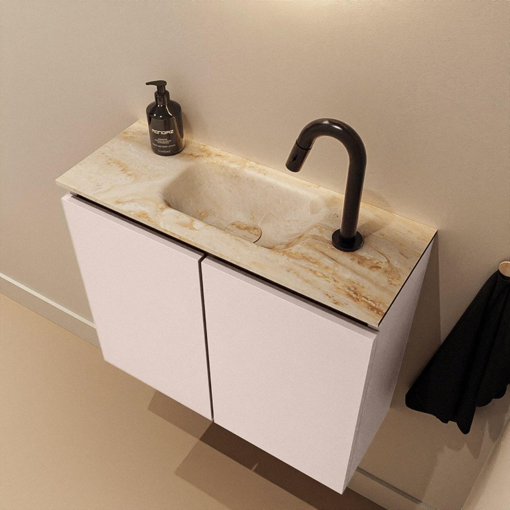 MONDIAZ TURE-DLUX 60cm toiletmeubel Rosee. EDEN wastafel Frappe positie midden. Met 1 kraangat.
