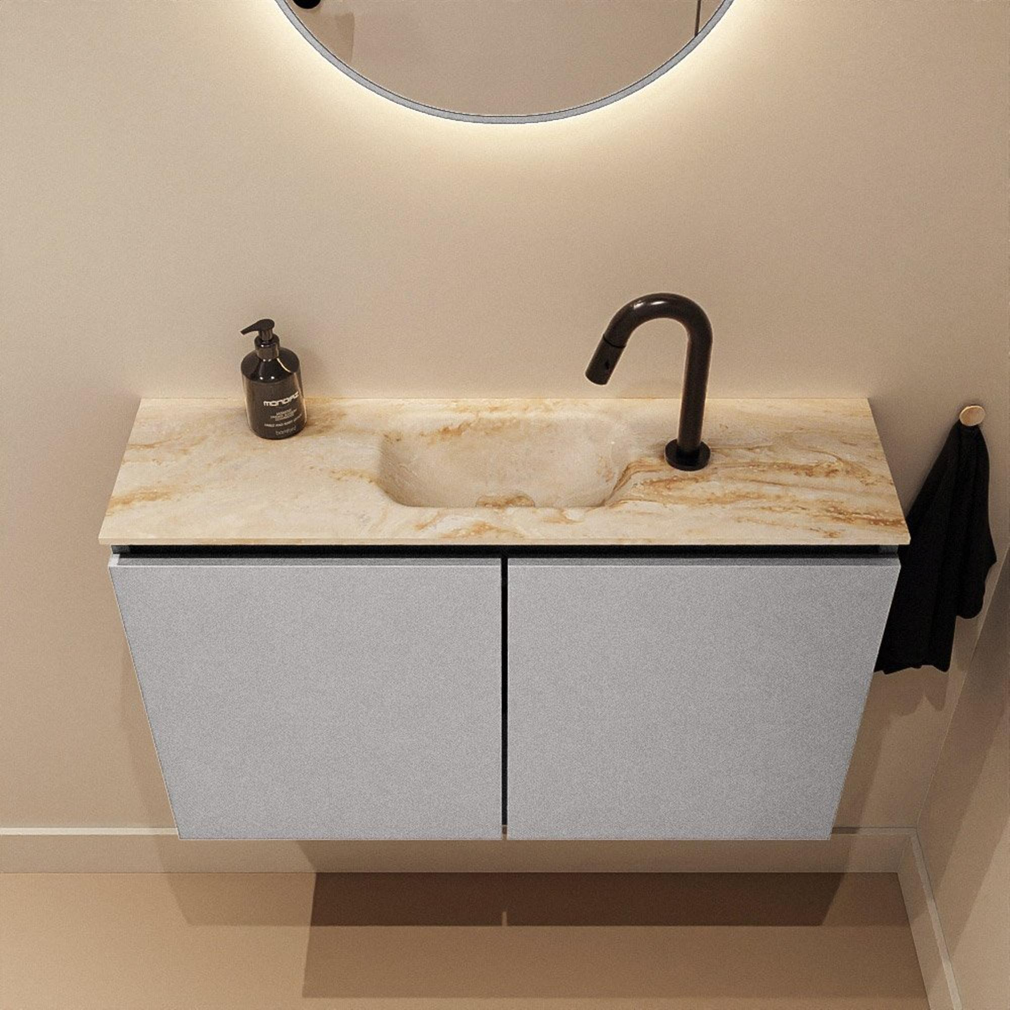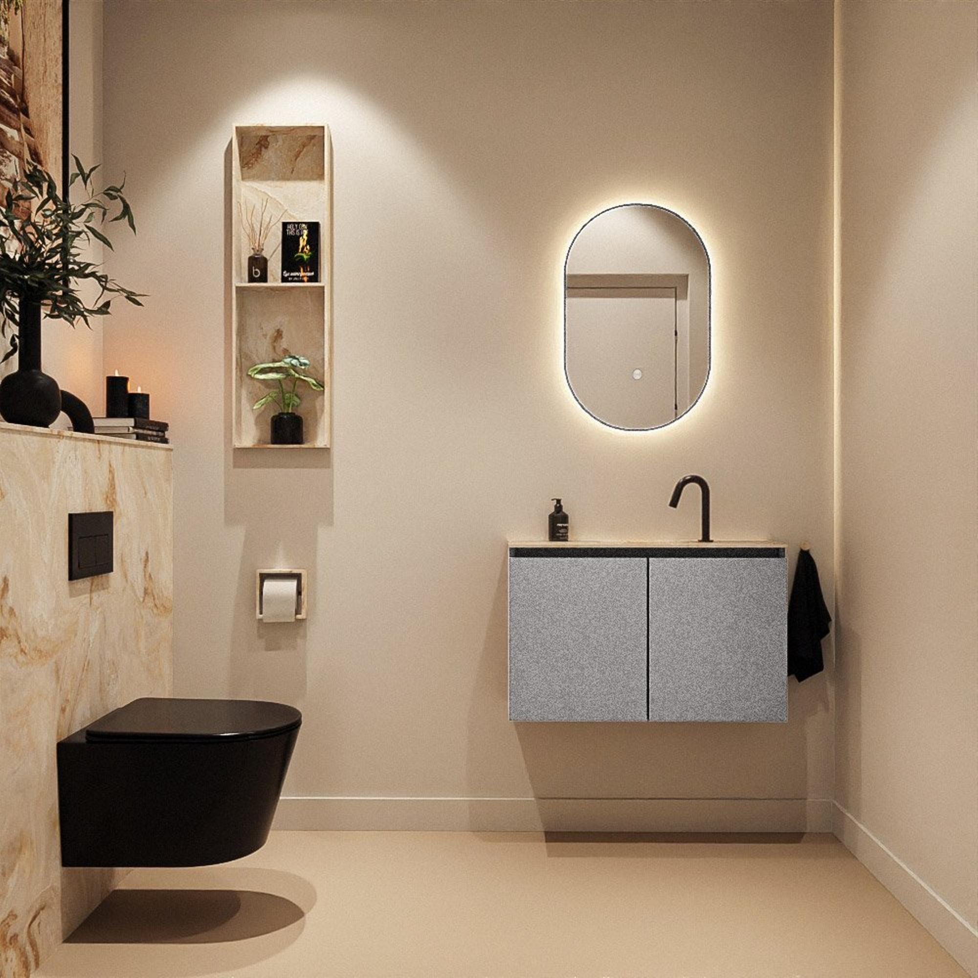 MONDIAZ TURE-DLUX 80cm toiletmeubel Plata. EDEN wastafel Frappe positie midden. Met 1 kraangat.