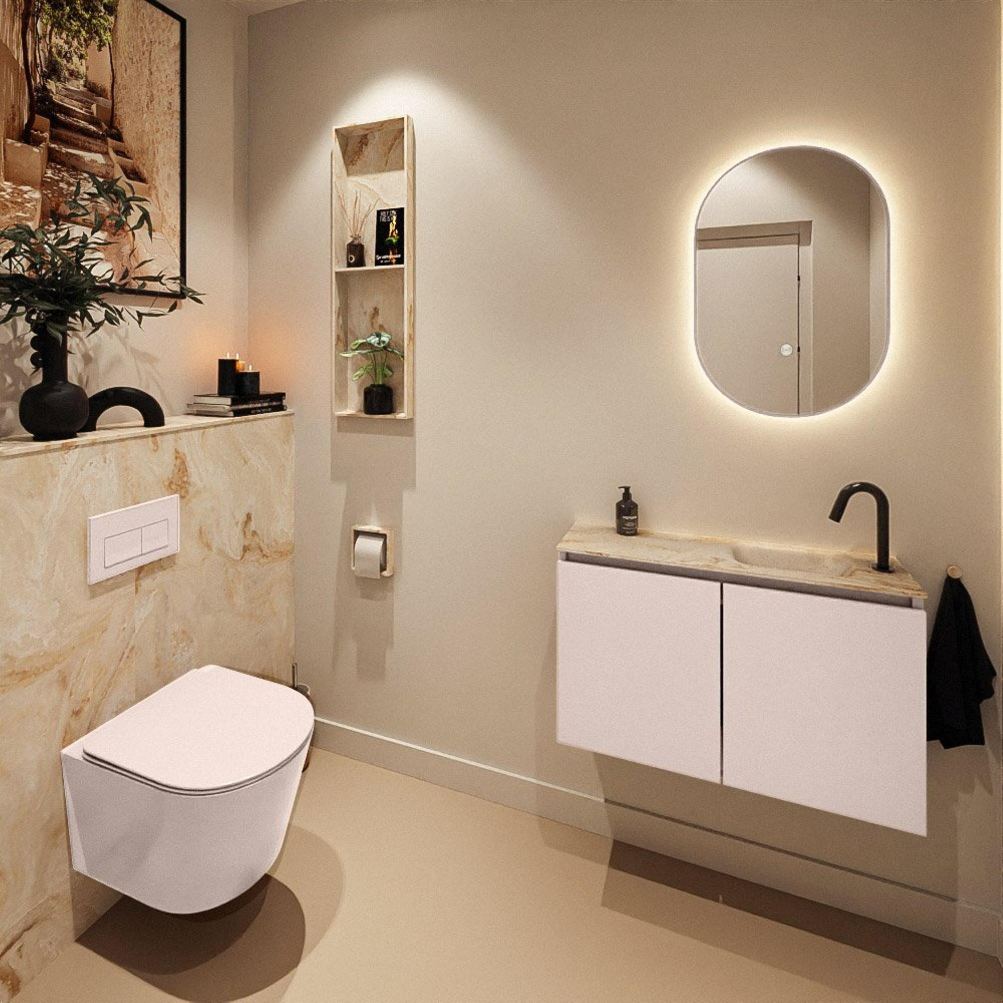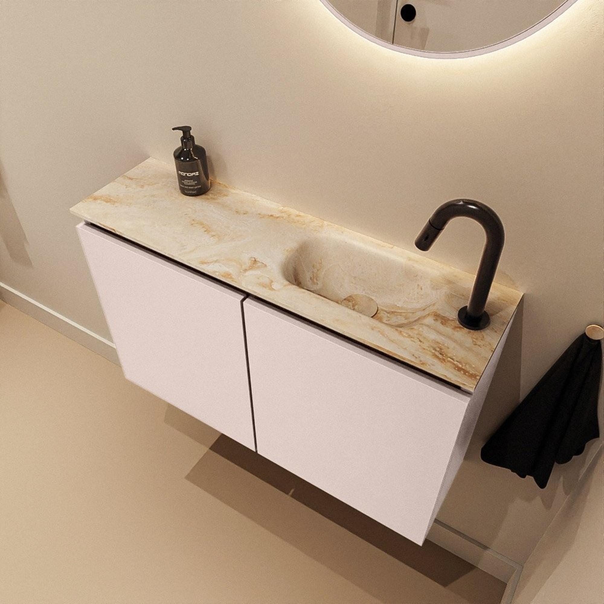 MONDIAZ TURE-DLUX 80cm toiletmeubel Rosee. EDEN wastafel Frappe positie rechts. Met 1 kraangat.