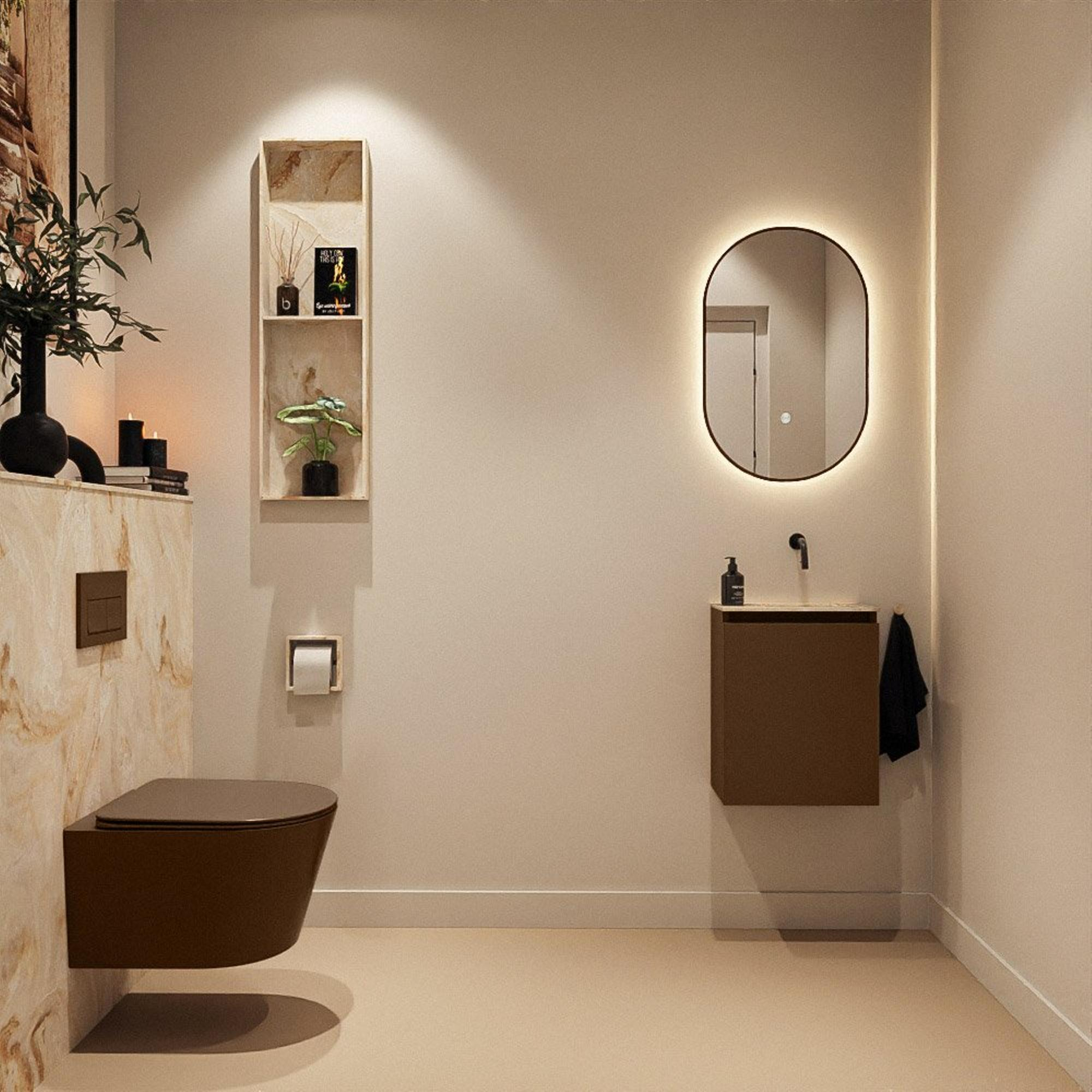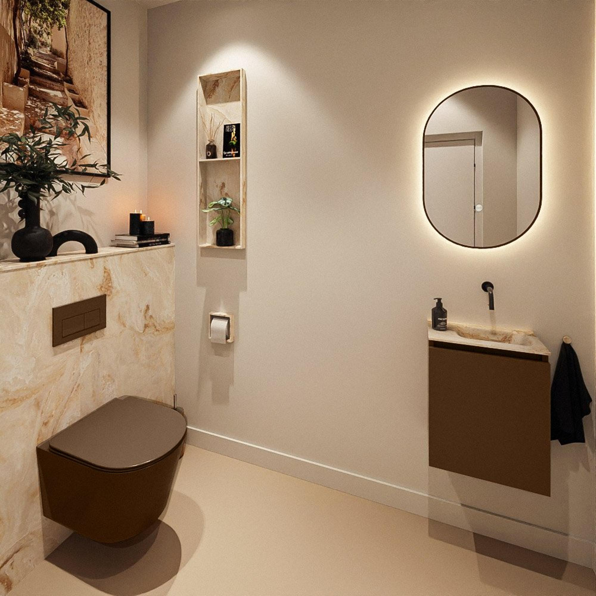 MONDIAZ TURE-DLUX 40cm toiletmeubel Rust. EDEN wastafel Frappe positie rechts. Zonder kraangat.