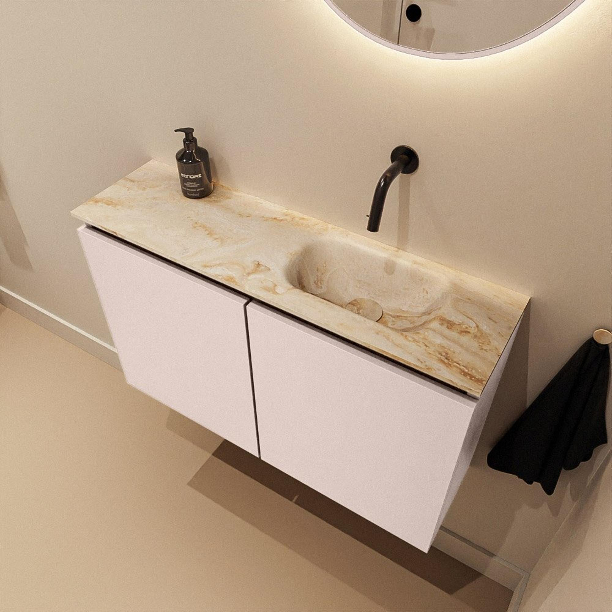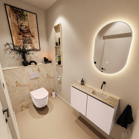 MONDIAZ TURE-DLUX 80cm toiletmeubel Rosee. EDEN wastafel Frappe positie rechts. Zonder kraangat.