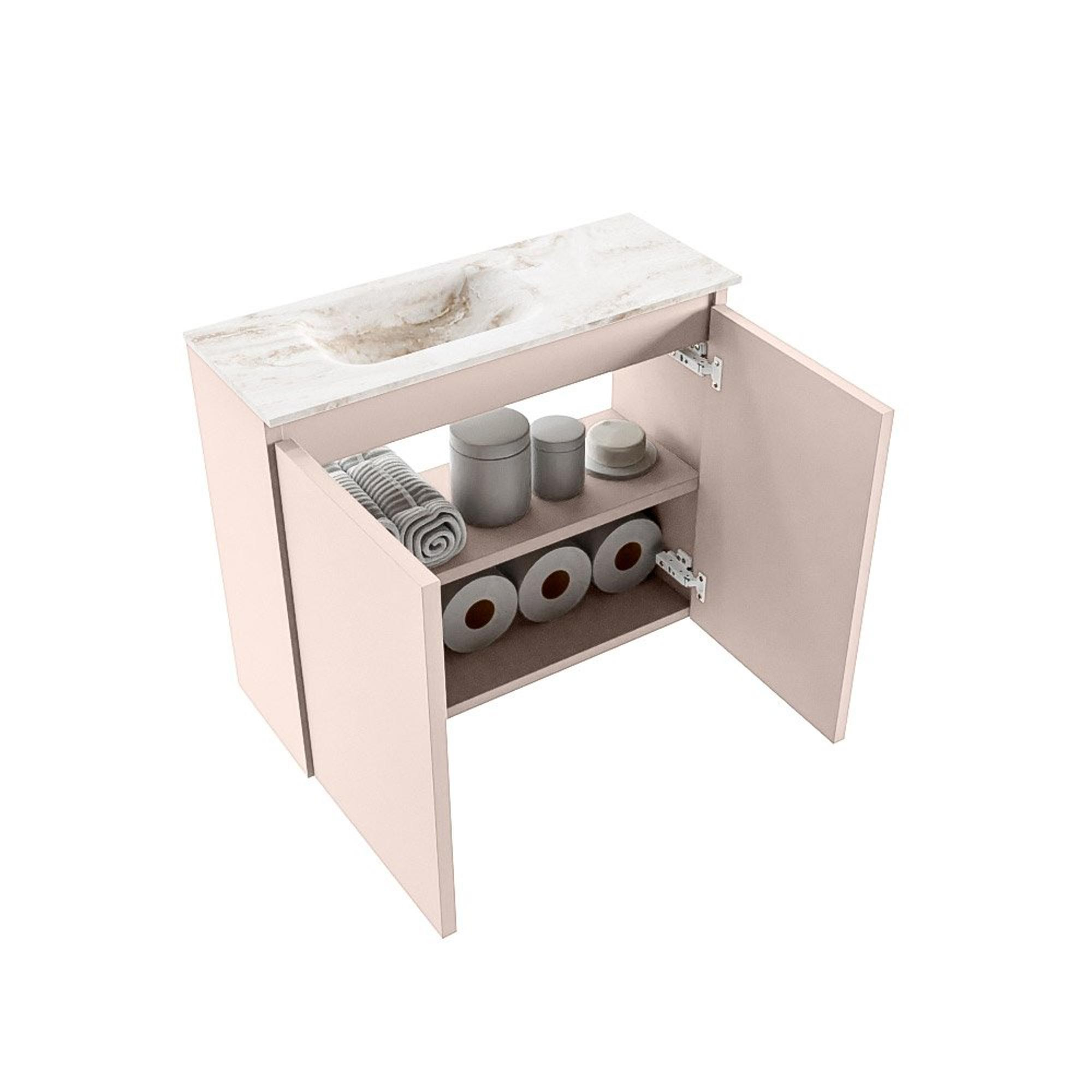 MONDIAZ TURE-DLUX 60cm toiletmeubel Rosee. EDEN wastafel Frappe positie links. Met 1 kraangat.