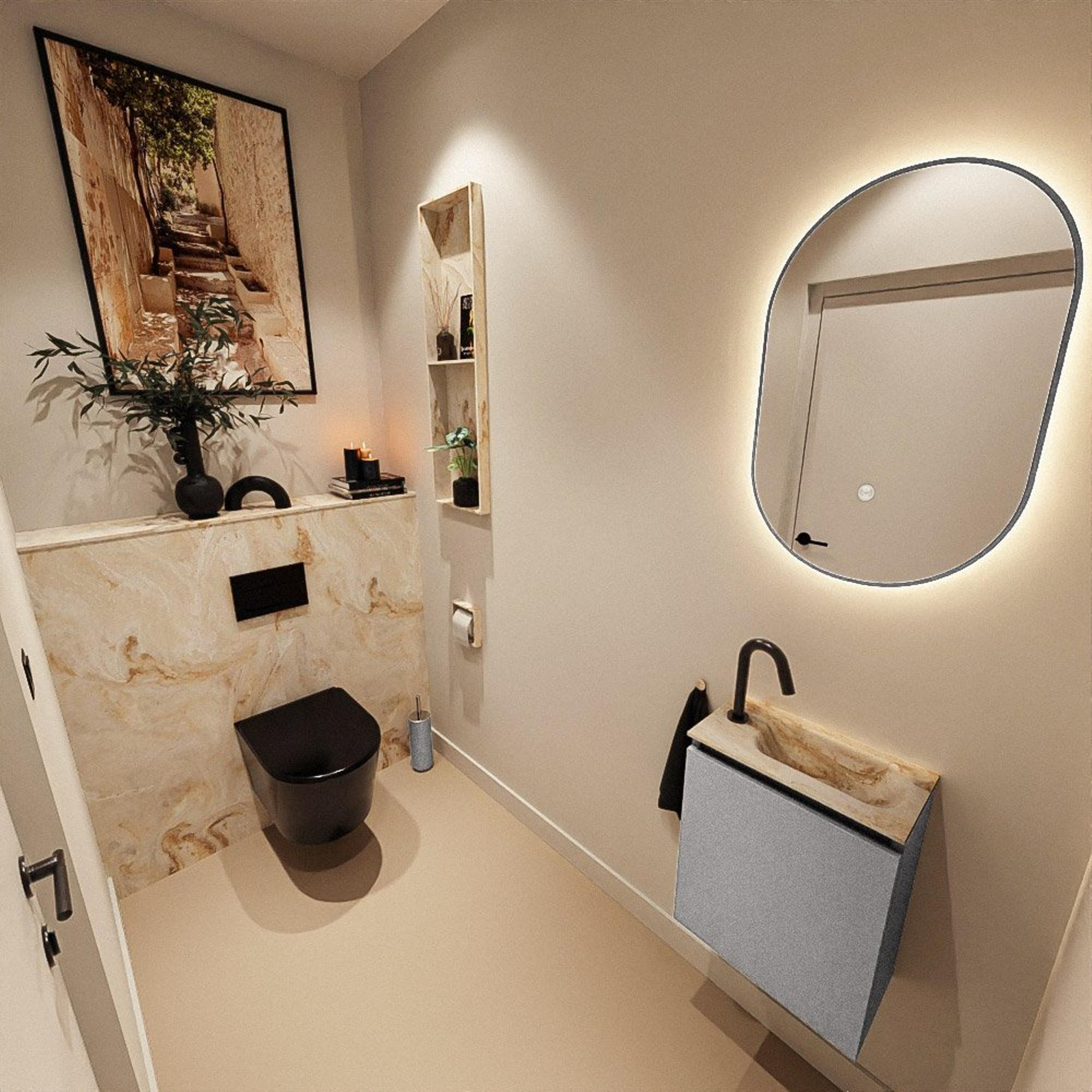 MONDIAZ TURE-DLUX 40cm toiletmeubel Plata. EDEN wastafel Frappe positie rechts. Met 1 kraangat.
