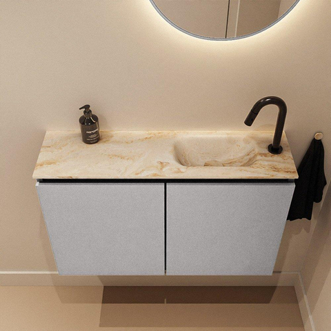 MONDIAZ TURE-DLUX 80cm toiletmeubel Plata. EDEN wastafel Frappe positie rechts. Met 1 kraangat.