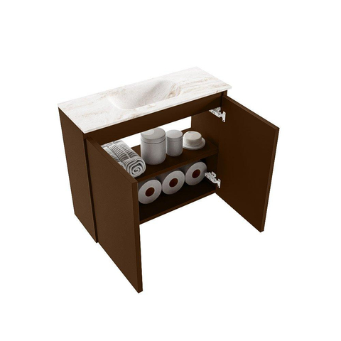 MONDIAZ TURE-DLUX 60cm toiletmeubel Rust. EDEN wastafel Frappe positie midden. Met 1 kraangat.