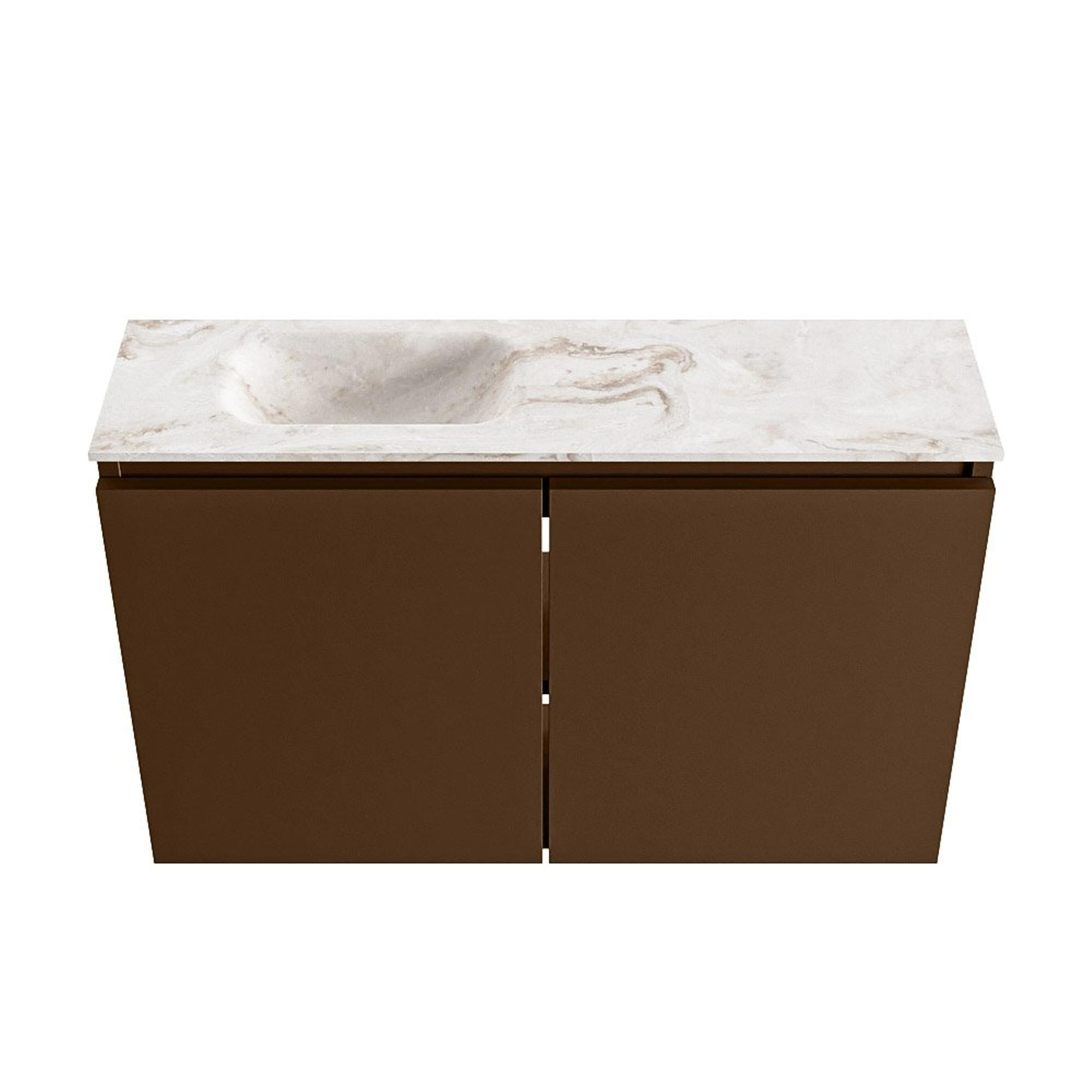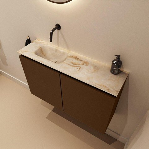 MONDIAZ TURE-DLUX 80cm toiletmeubel Rust. EDEN wastafel Frappe positie links. Zonder kraangat.