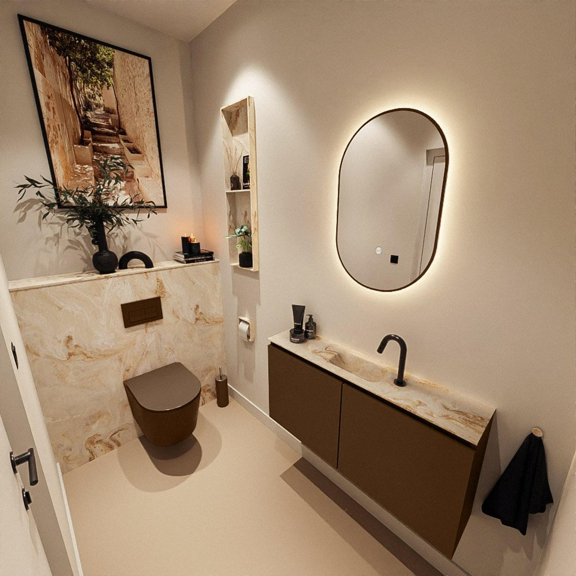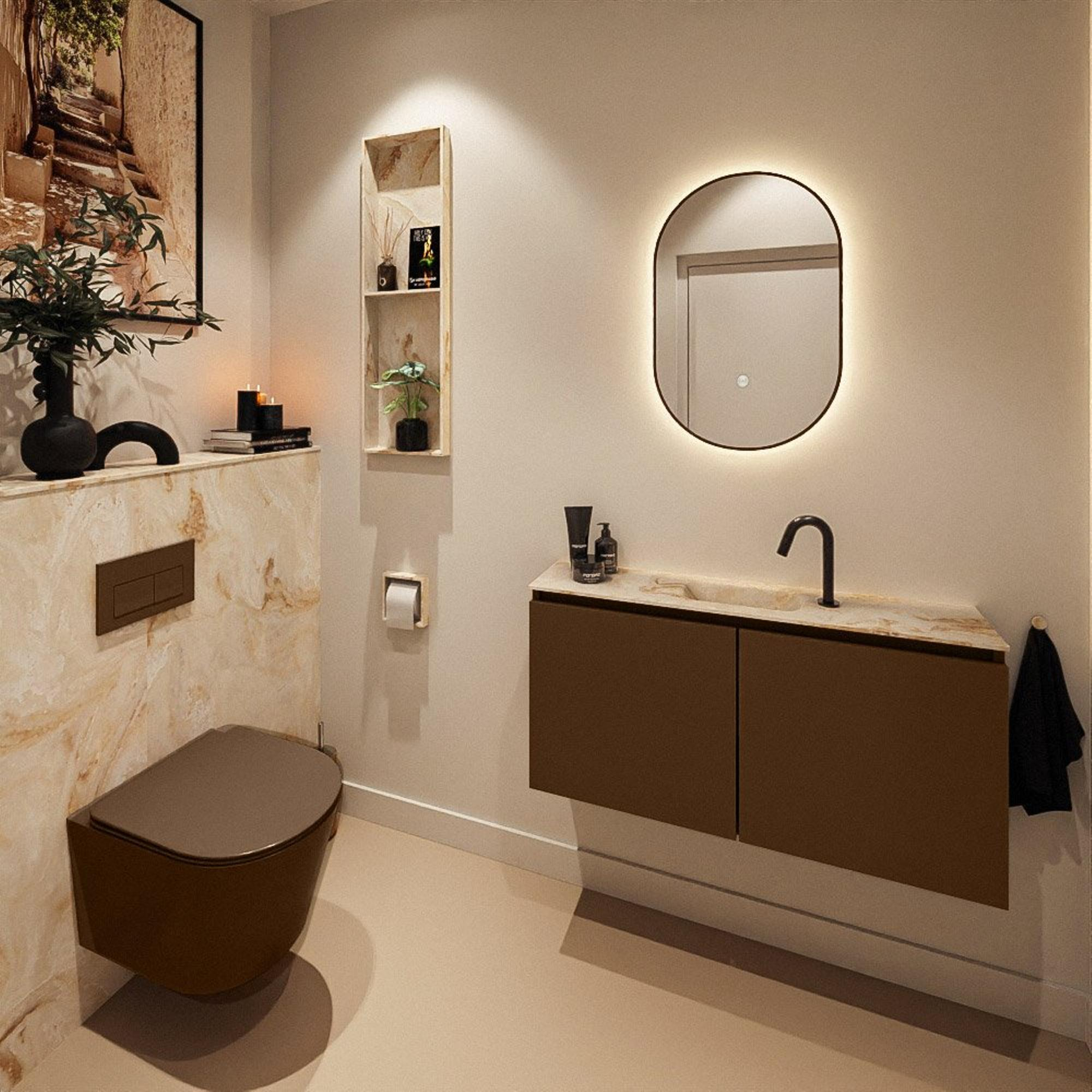 MONDIAZ TURE-DLUX 100cm toiletmeubel Rust. EDEN wastafel Frappe positie midden. Met 1 kraangat.