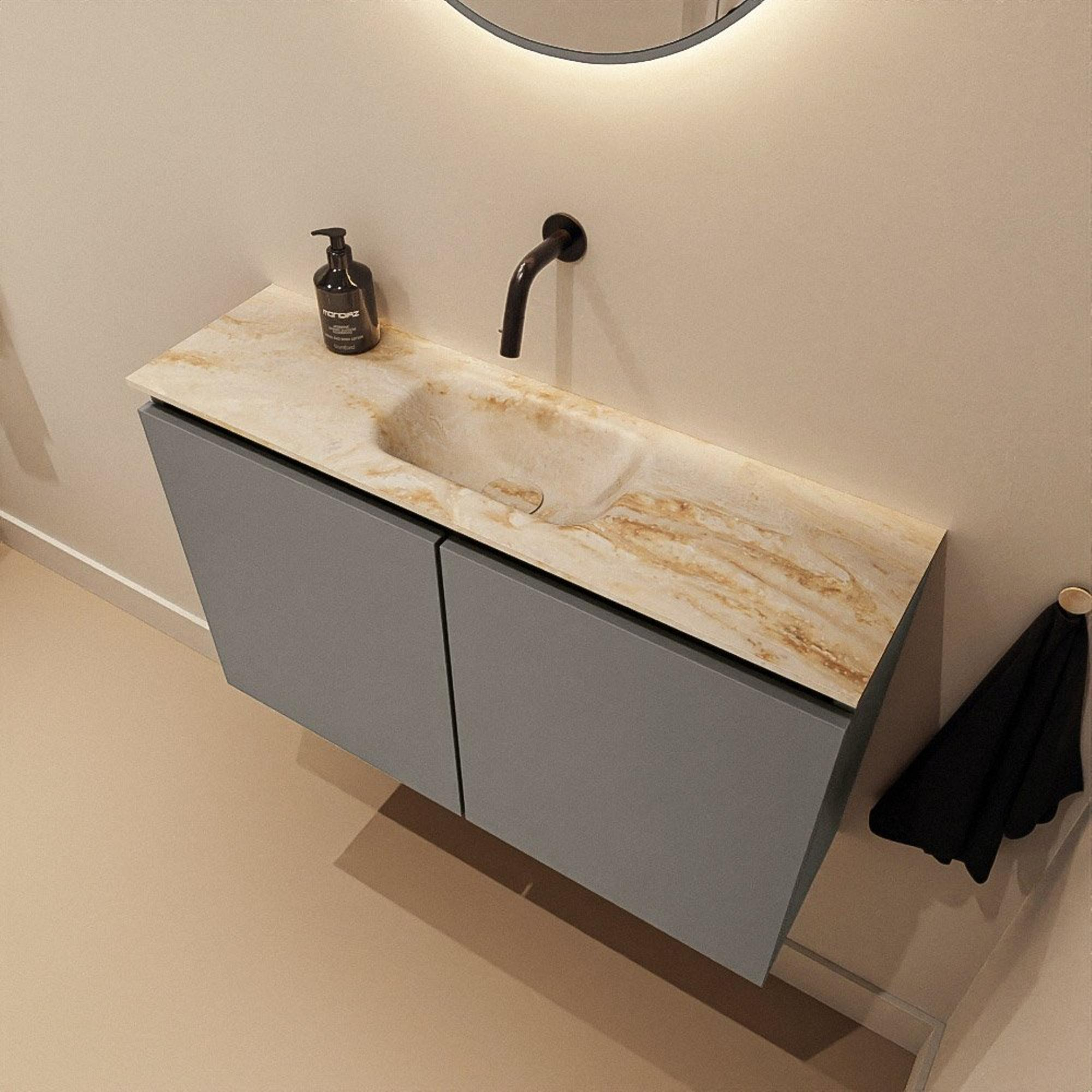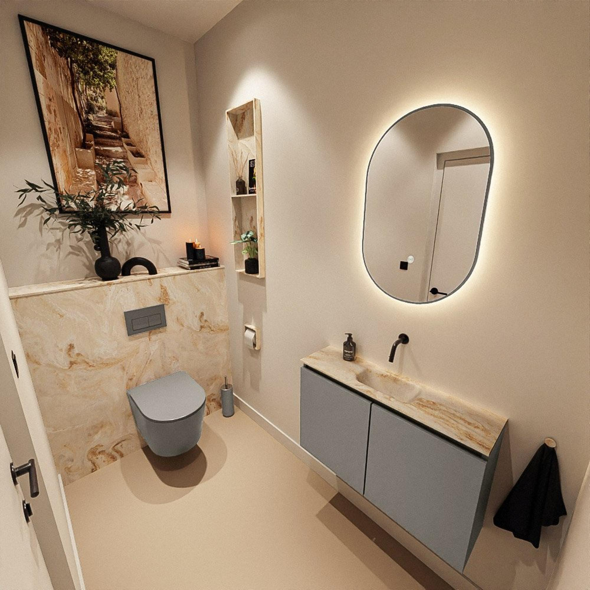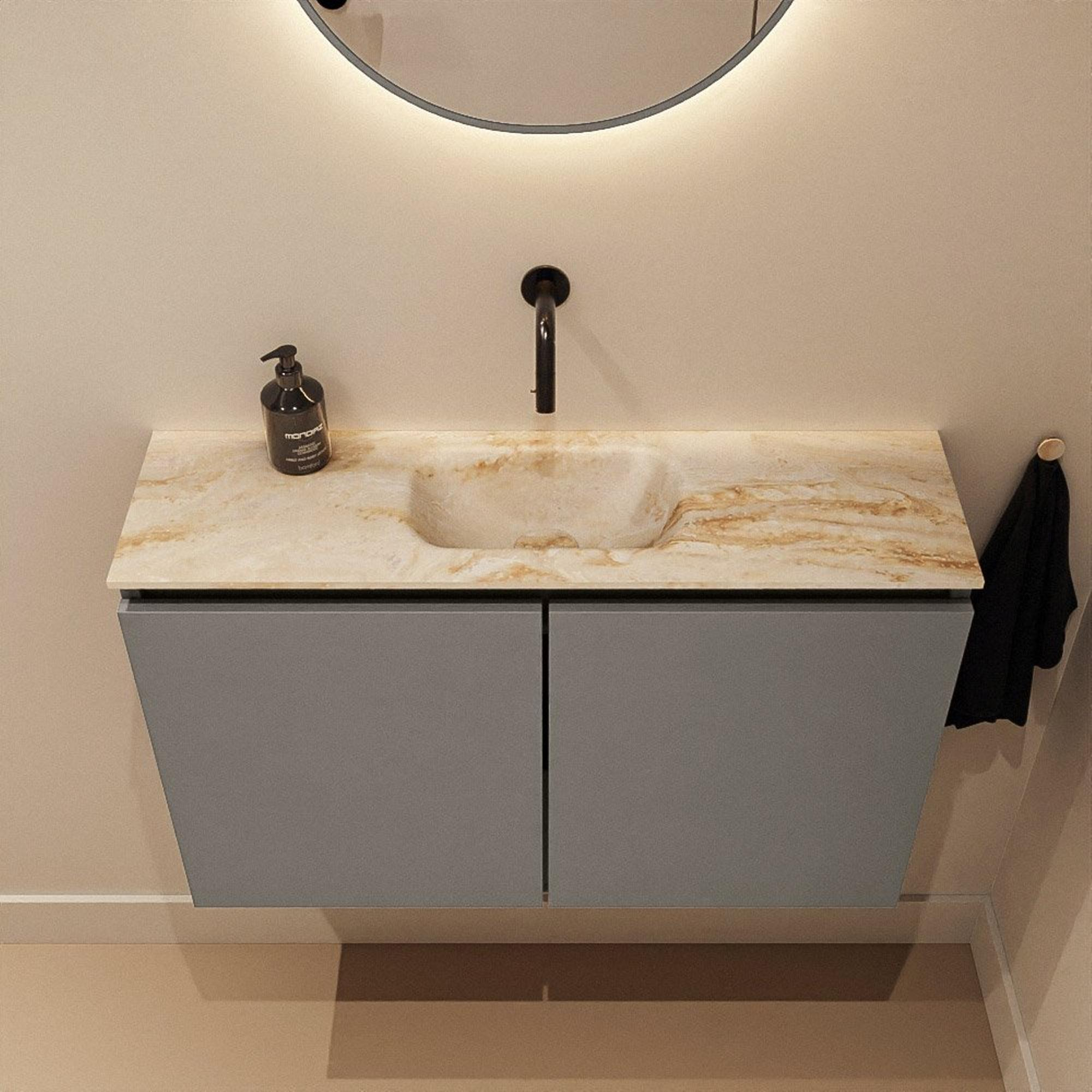 MONDIAZ TURE-DLUX 80cm toiletmeubel Smoke. EDEN wastafel Frappe positie midden. Zonder kraangat.