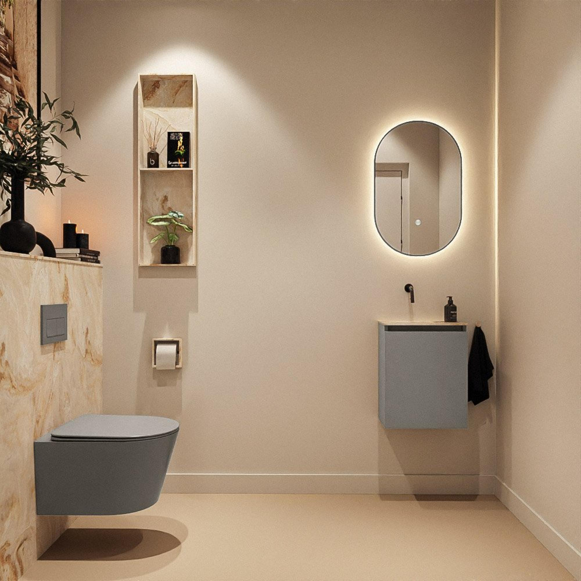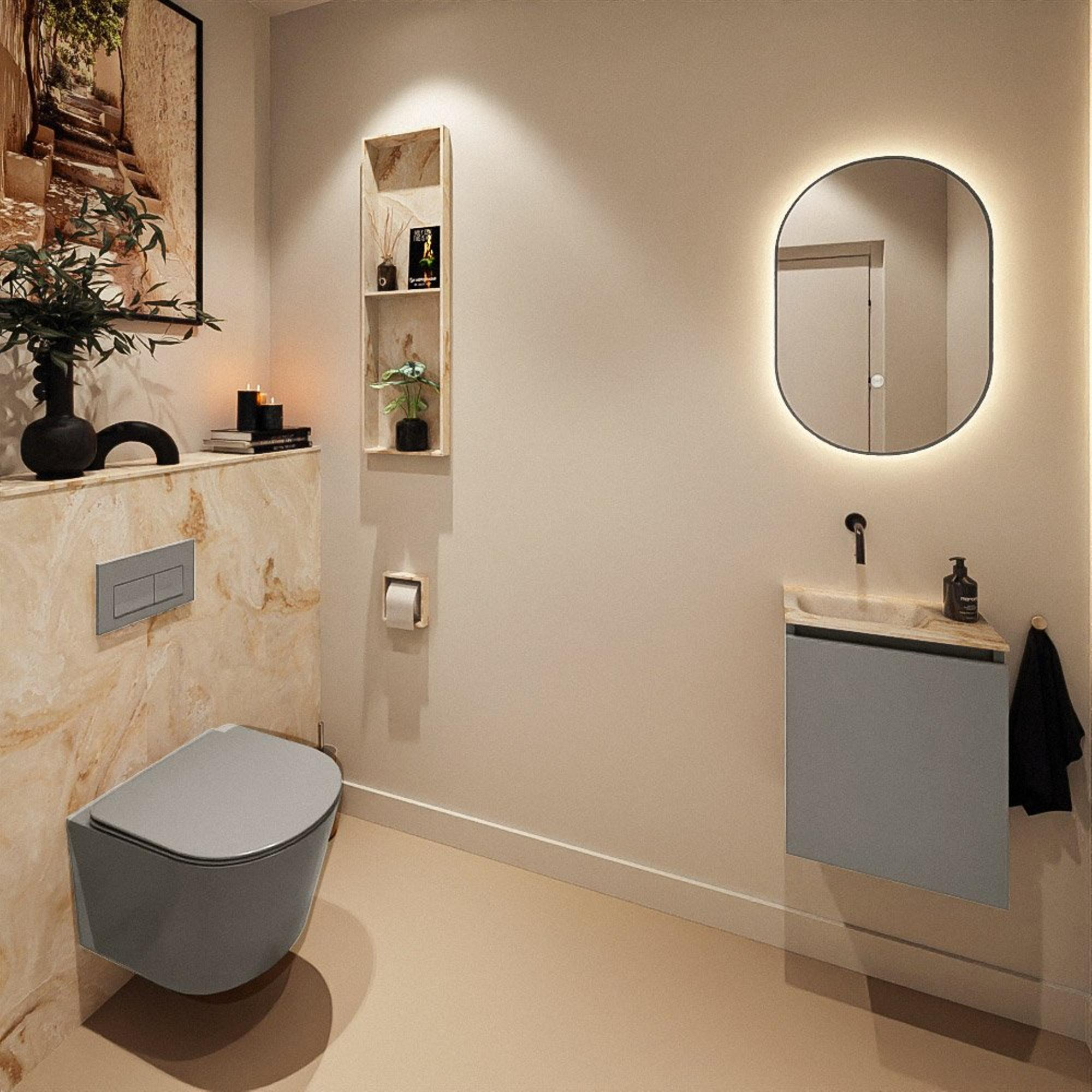 MONDIAZ TURE-DLUX 40cm toiletmeubel Smoke. EDEN wastafel Frappe positie links. Zonder kraangat.