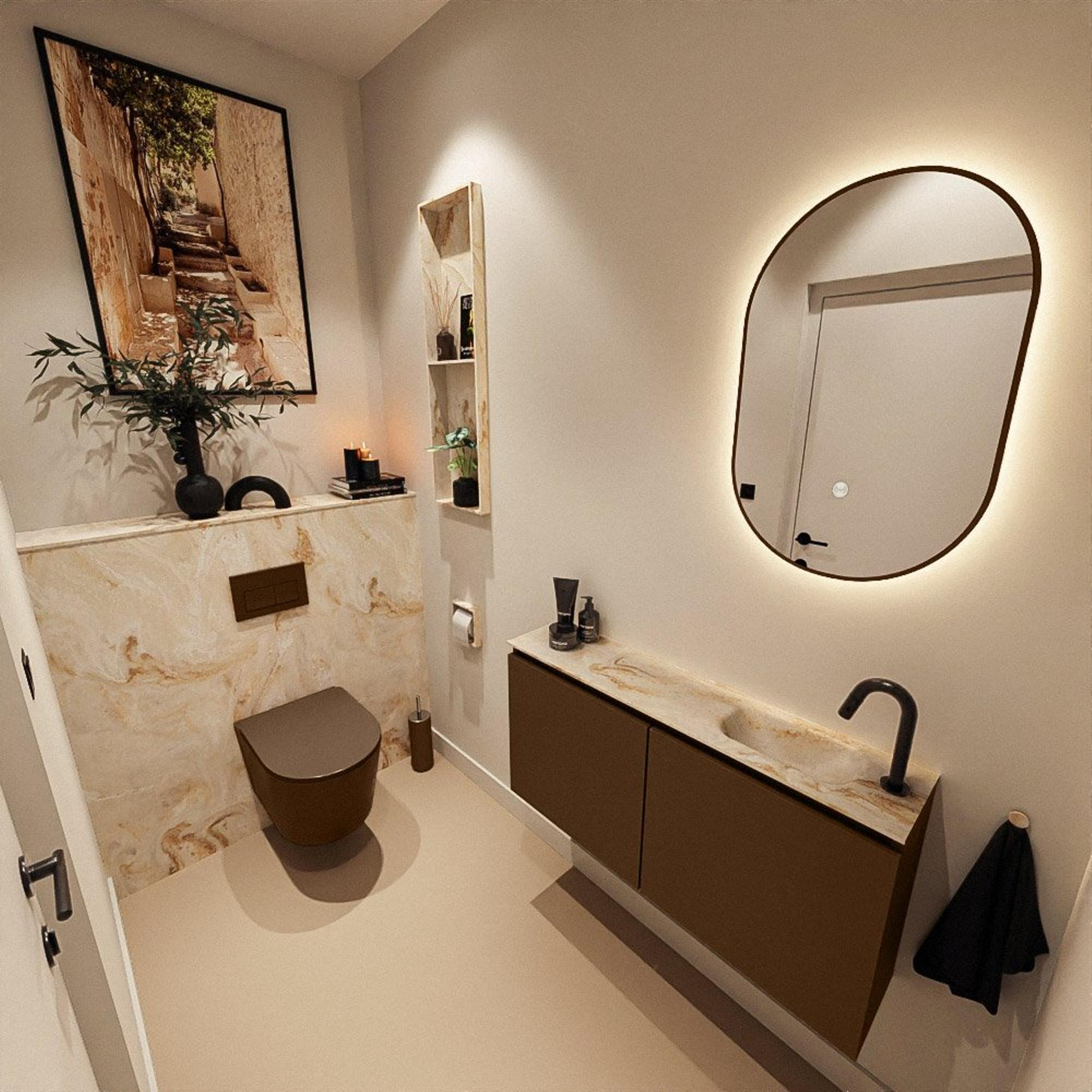 MONDIAZ TURE-DLUX 100cm toiletmeubel Rust. EDEN wastafel Frappe positie rechts. Met 1 kraangat.