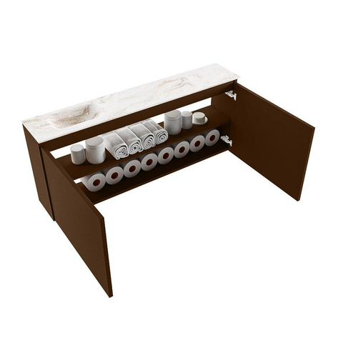 MONDIAZ TURE-DLUX 120cm toiletmeubel Rust. EDEN wastafel Frappe positie links. Zonder kraangat.