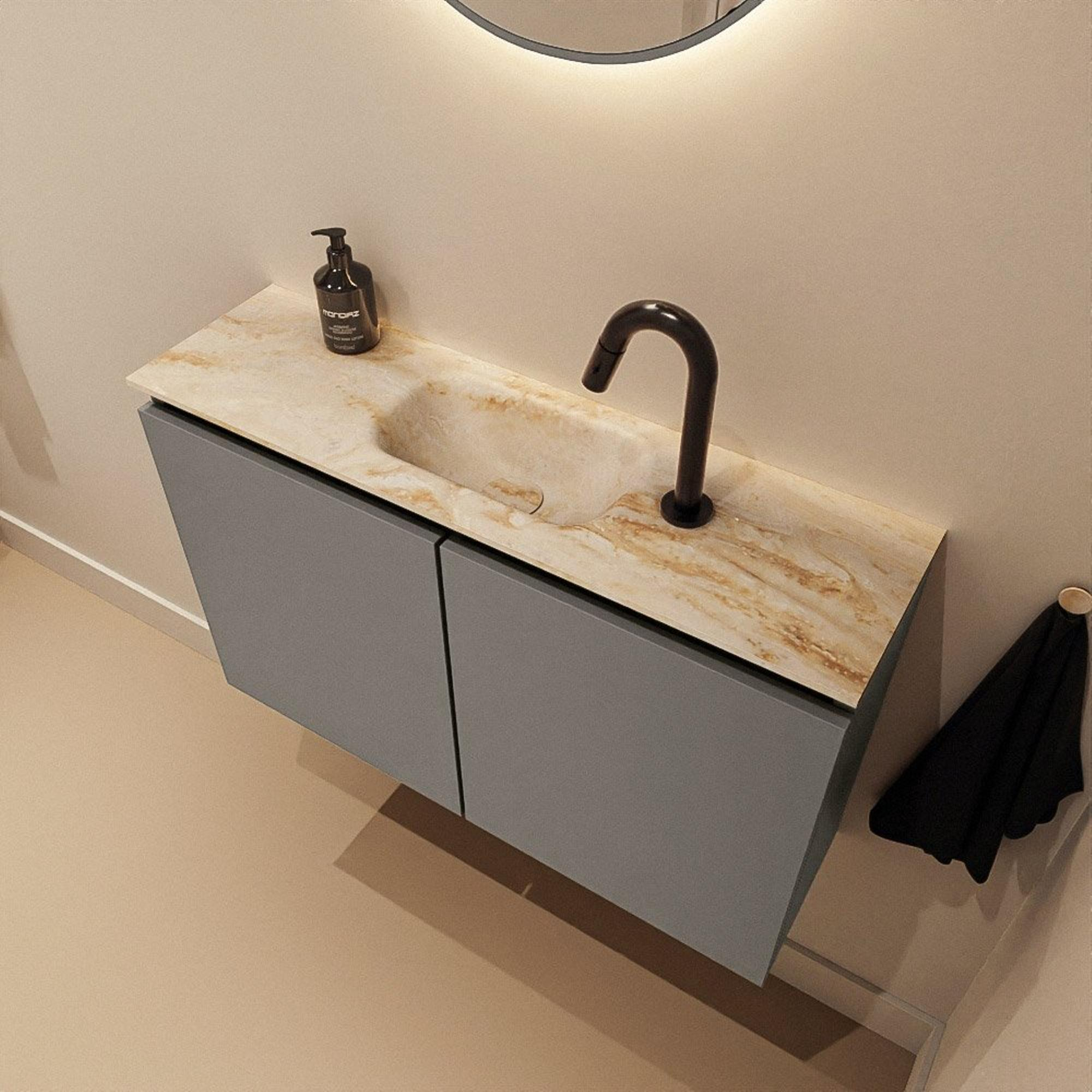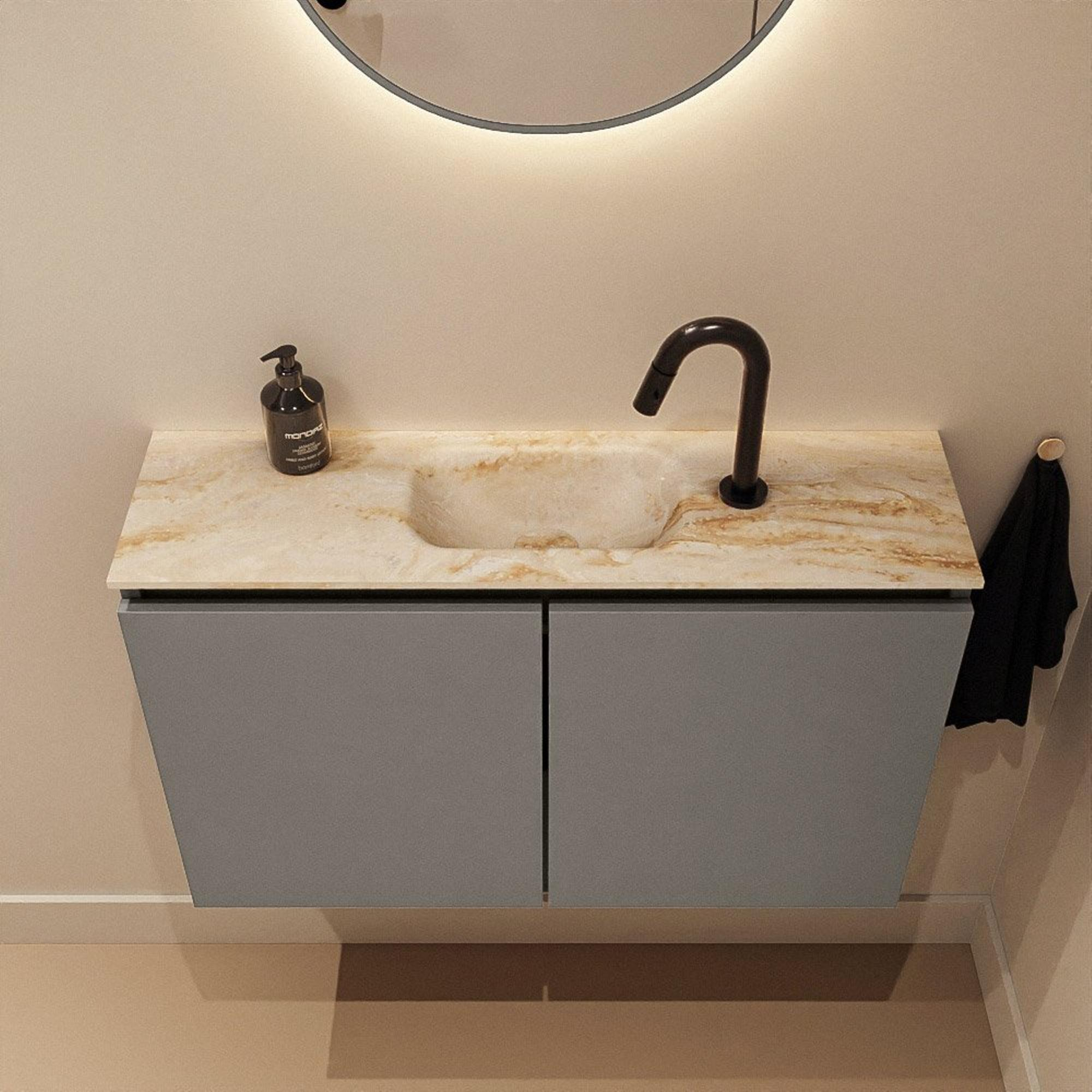 MONDIAZ TURE-DLUX 80cm toiletmeubel Smoke. EDEN wastafel Frappe positie midden. Met 1 kraangat.